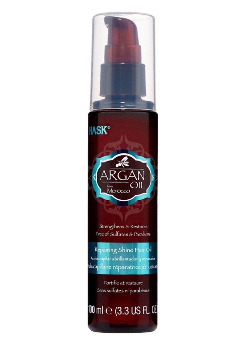 Argan Oil là dầu chiết xuất từ hạt cây argan (loại cây có nhiều ở các vùng Morocco và Algeria). Dầu dưỡng tóc argan oil có công dụng tức thời rất tốt trong việc tạo kiểu và giữ nếp tóc. Nếu nàng đang vội vàng thì một chút dầu argan lên tóc sẽ tạo cảm giác óng ả mềm mượt ngay lập tức. Với mái tóc khô dễ gãy thì dầu dưỡng tóc argan oil chính là một người bạn tuyệt vời. Với tính cân bằng ẩm cũng như độ ẩm cao tự có. Dầu argan sẽ loại bỏ những lọn tóc xơ và thô cứng. Thoa dầu argan lên da đầu. Massage nhẹ nhàng và dùng chụp tóc để qua đêm trước khi gội lại bình thường. Giá: $2,99 (69,518 VNĐ).