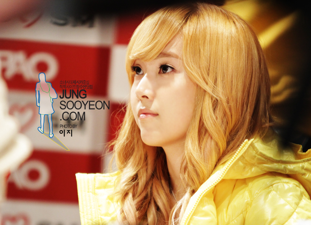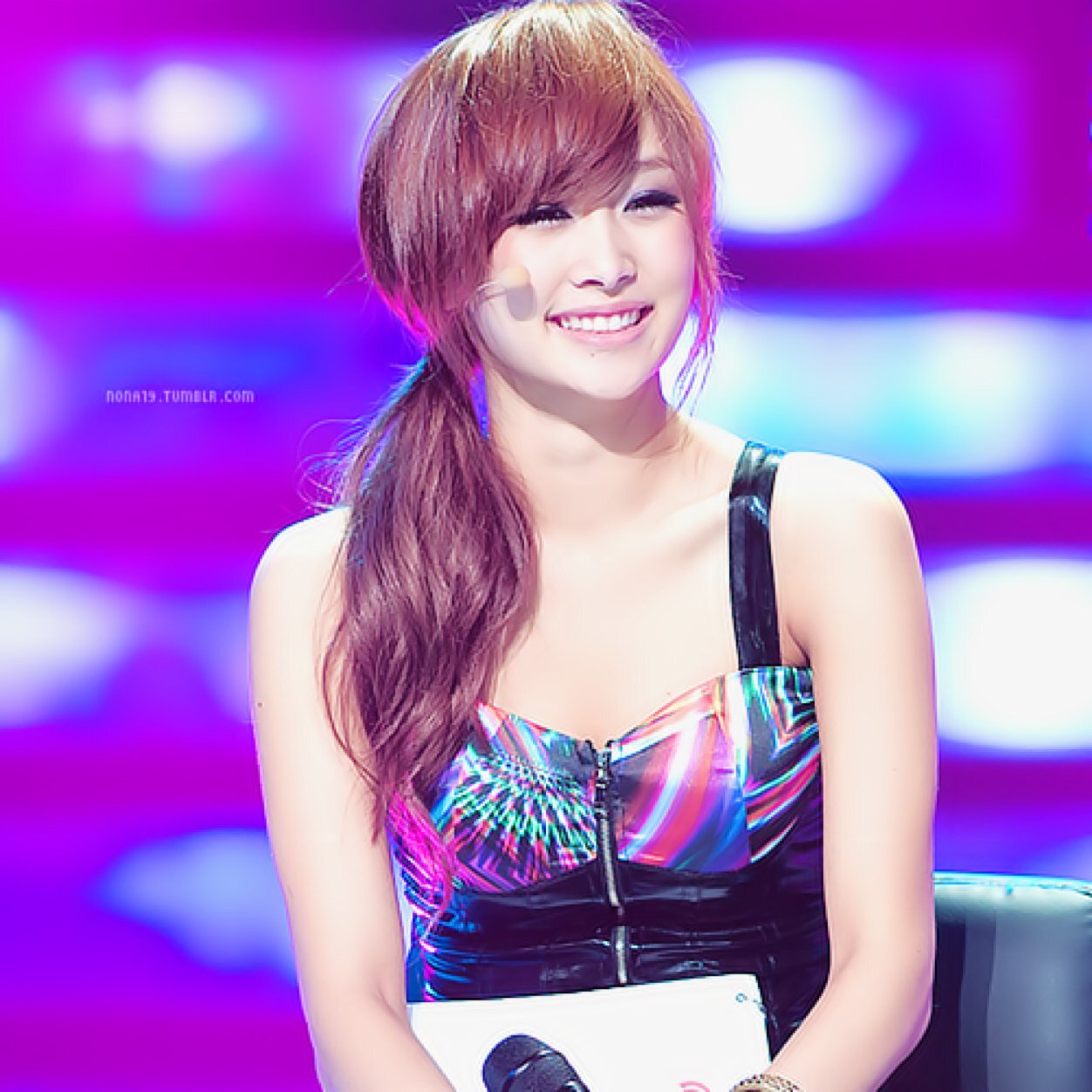Jessica (thành viên cũ của SNSD) cũng rất nổi tiếng với tóc vàng óng, mái rẽ ngôi bên hơi uốn cong.