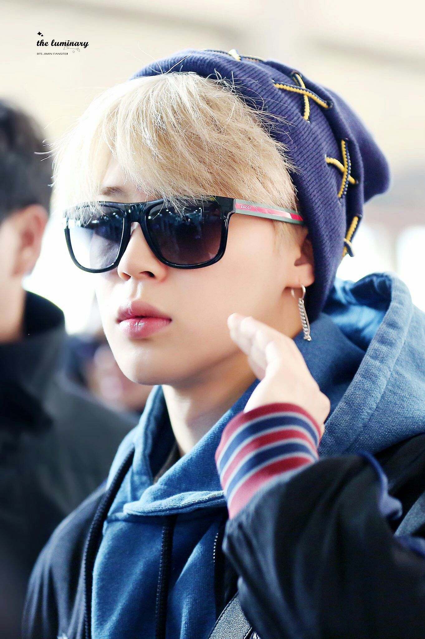 Tuy được fan tung hô rất nhiều về ngoại hình, không thể phủ nhận Jimin (BTS) có gương mặt khá phù. Bạn có thể học tập Jimin, sử dụng các loại kính to bản để mặt bạn nhỏ nhắn hơn.