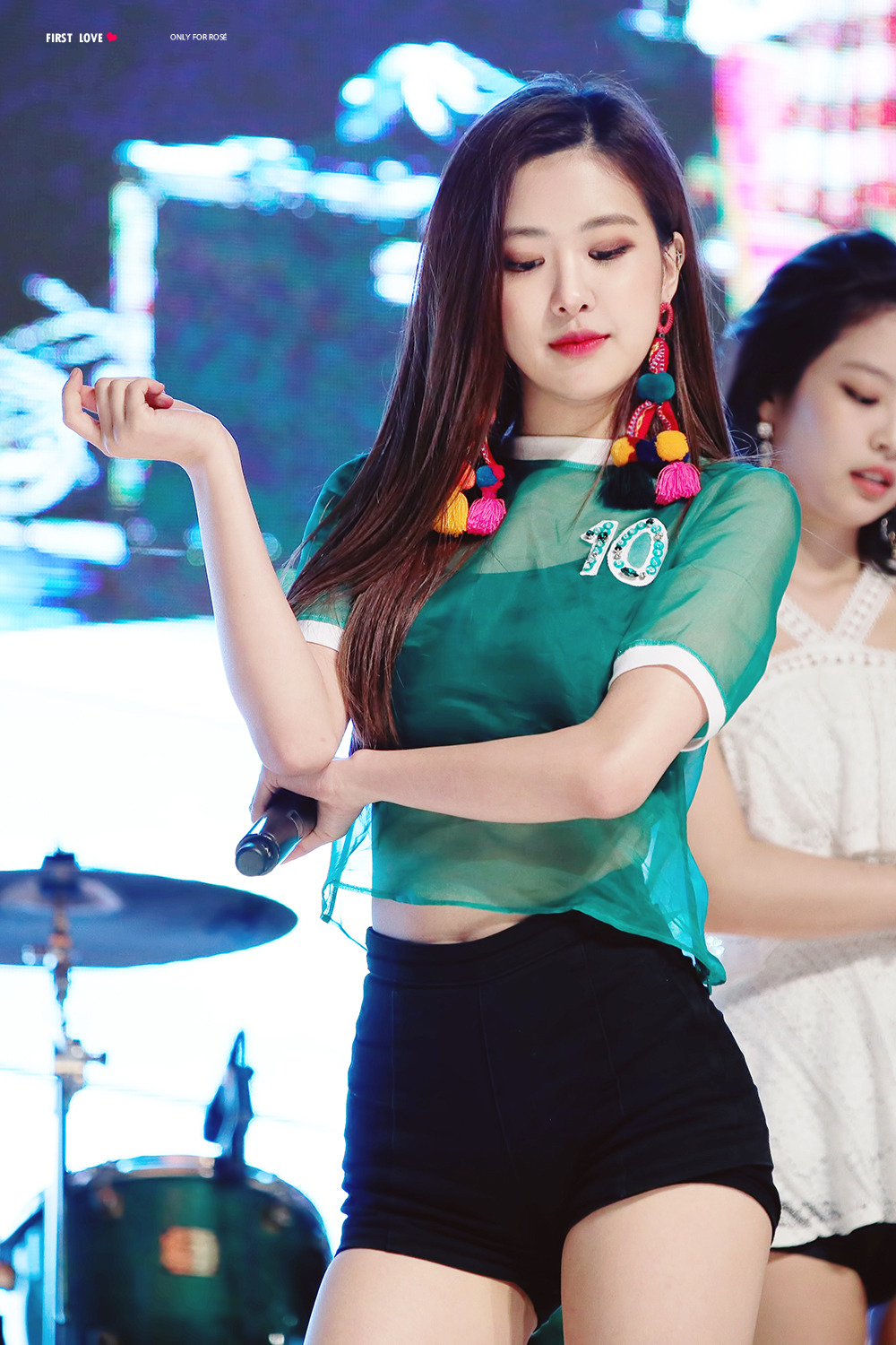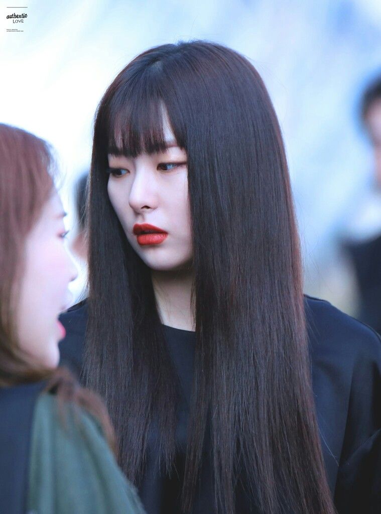 Seulgi (Red Velvet) có gương mặt bầu bĩnh. Cô nàng thường xuyên để tóc xõa dài để che bớt phần quai hàm hơi tròn của mình.