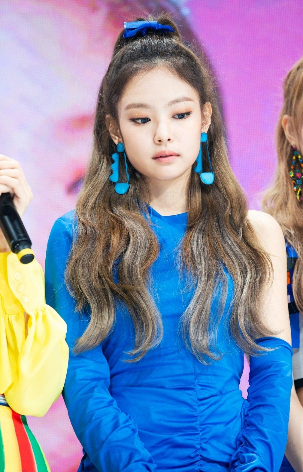 Bông tai treo lủng lẳng bên dưới đường hàm cũng làm cho một khuôn mặt tròn của Jennie ra dáng hình bầu dục hơn.