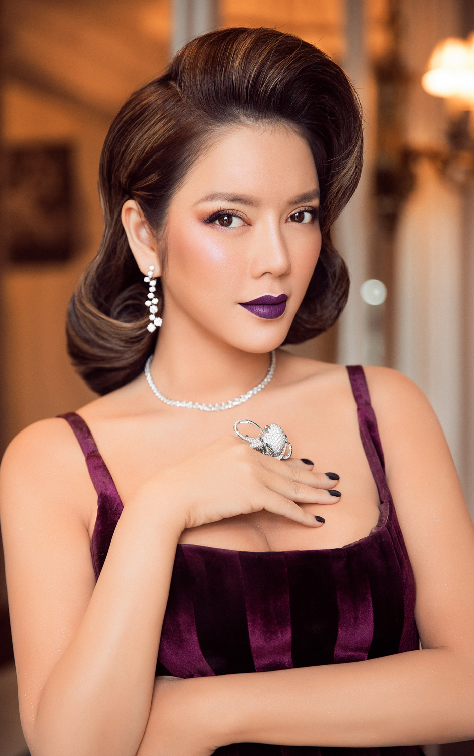 Trở thành màu sắc tiêu biểu cho năm 2018, tượng trưng cho sự lạc quan, quyền lực, tím vô cực vượt mặt các màu sắc khác và lấn sân ngay sang các bộ sưu tập thời trang từ quần áo, giày dép, đồ trang sức, trang trí nội thất… Và không bỏ lỡ điều này, Lý Nhã Kỳ nhuộm thảm đỏ với tone màu bí ẩn đặc biệt này.