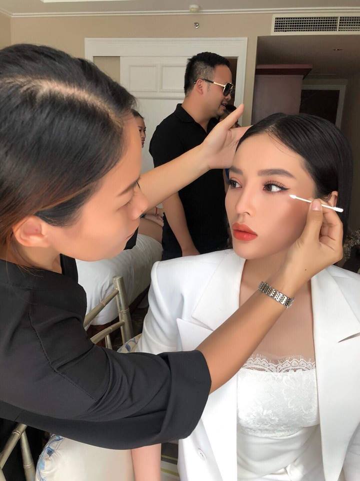 Xuất hiện trong chương trình Siêu mẫu Việt Nam 2018, Kỳ Duyên gây ấn tượng mạnh với thần thái “quyền lực” đúng chuẩn HLV. Cũng như mọi khi, mỹ nhân chọn phong cách trang điểm Thái Lan với màu son da người pha cam đất, đôi mắt được kẻ eyeliner và chuốt mascara kĩ lưỡng, phấn má màu cam nhạt.