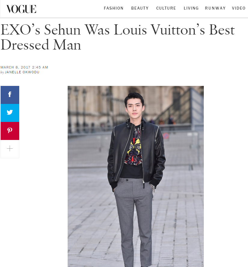 Sehun được chọn là người đàn ông mặc đẹp nhất vào show diễn năm 2017.