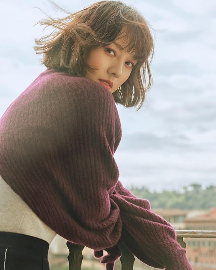 Cô nàng nhanh chóng thẳng tay cắt tóc sau khi hoàn thành bộ phim Mr. Sunshine của đài tvN. Kiểu tóc này hợp với Taeri 100%. Đường nét thanh tú và vầng trán cao của cô được khoe triệt để. Rất nhiều chị em trên Pann bày tỏ sự ngưỡng mộ và muốn cắt tóc cho giống với phong cách Kim Taeri.
