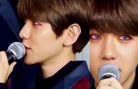 Trước đây Baekhyun đã rất nổi tiếng là chàng trai ‘ăn’ trang điểm vì phấn mắt màu đỏ rượu quá lạ. Trong khi các nàng cá tính đánh mắt khói chỉ nghĩ đến màu nâu, đen, ghi, thì Baekhyun lại ‘quất’ hẳn màu đỏ. Ai mà ngờ được?