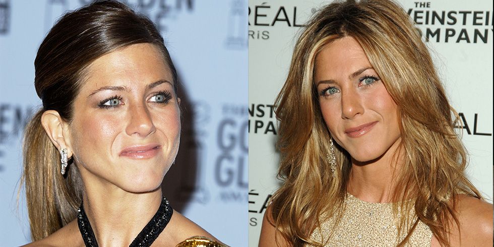 14. Năm 2005, sau khi chia tay Brad Pitt, Jennifer Aniston cũng chia tay mái tóc nâu tự nhiên. Cho đến tận bây giờ, cô vẫn trung thành với tóc vàng sáng.