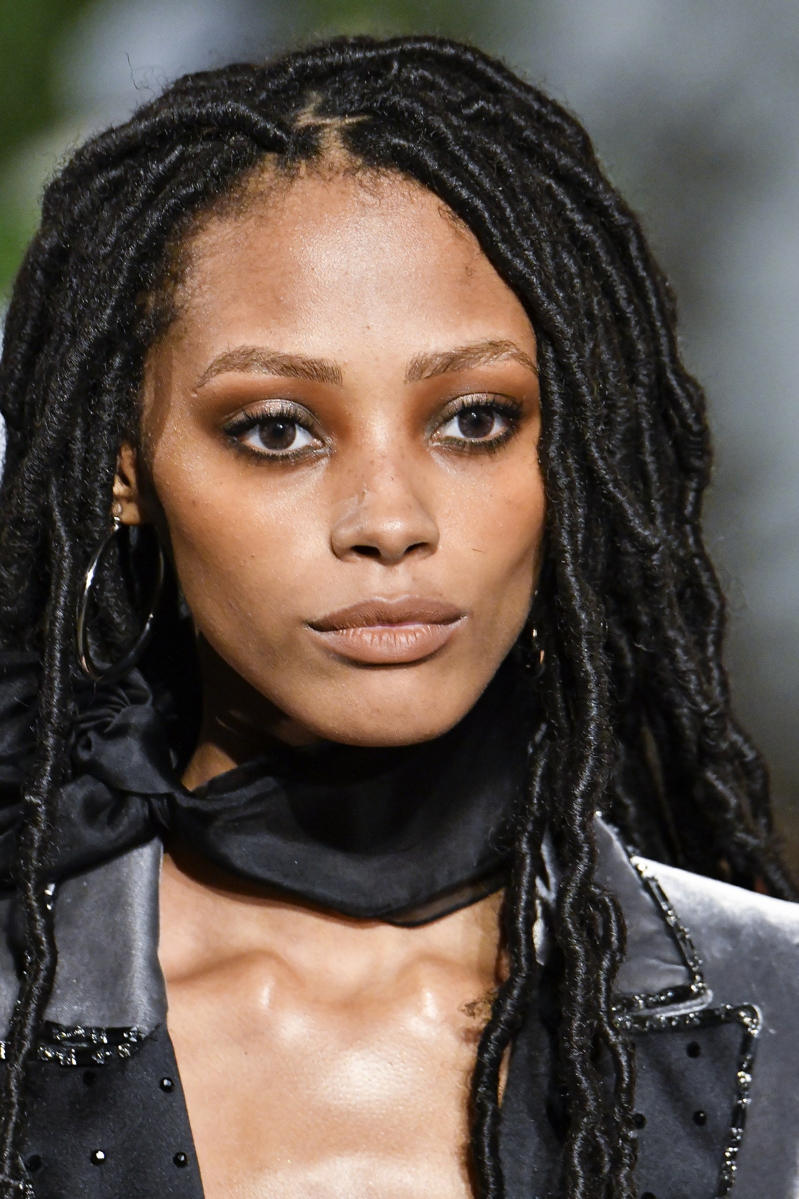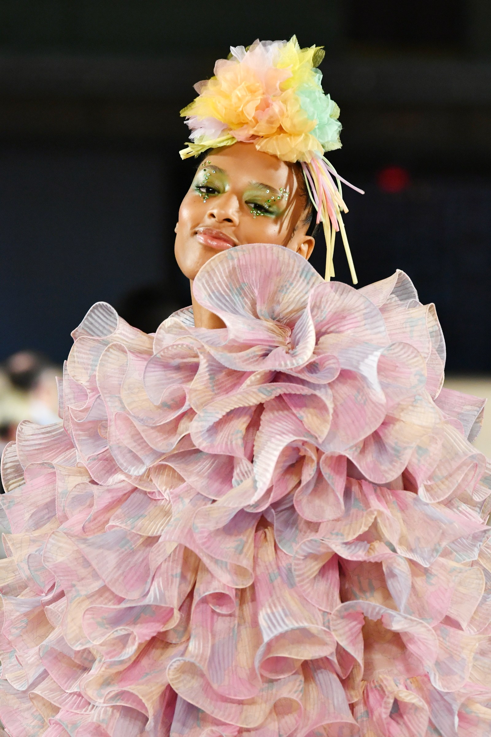 7. Buổi trình diễn của Pyer Moss là một lễ kỷ niệm cho phong cách thời trang ‘đen toàn bộ’. Nhà thiết kế Kerby Jean-Raymond đã hợp tác với thương hiệu làm đẹp nổi tiếng với màu đen Uoma Beauty để tạo ra sản phẩm quyến rũ rock-and-roll của những năm 70.