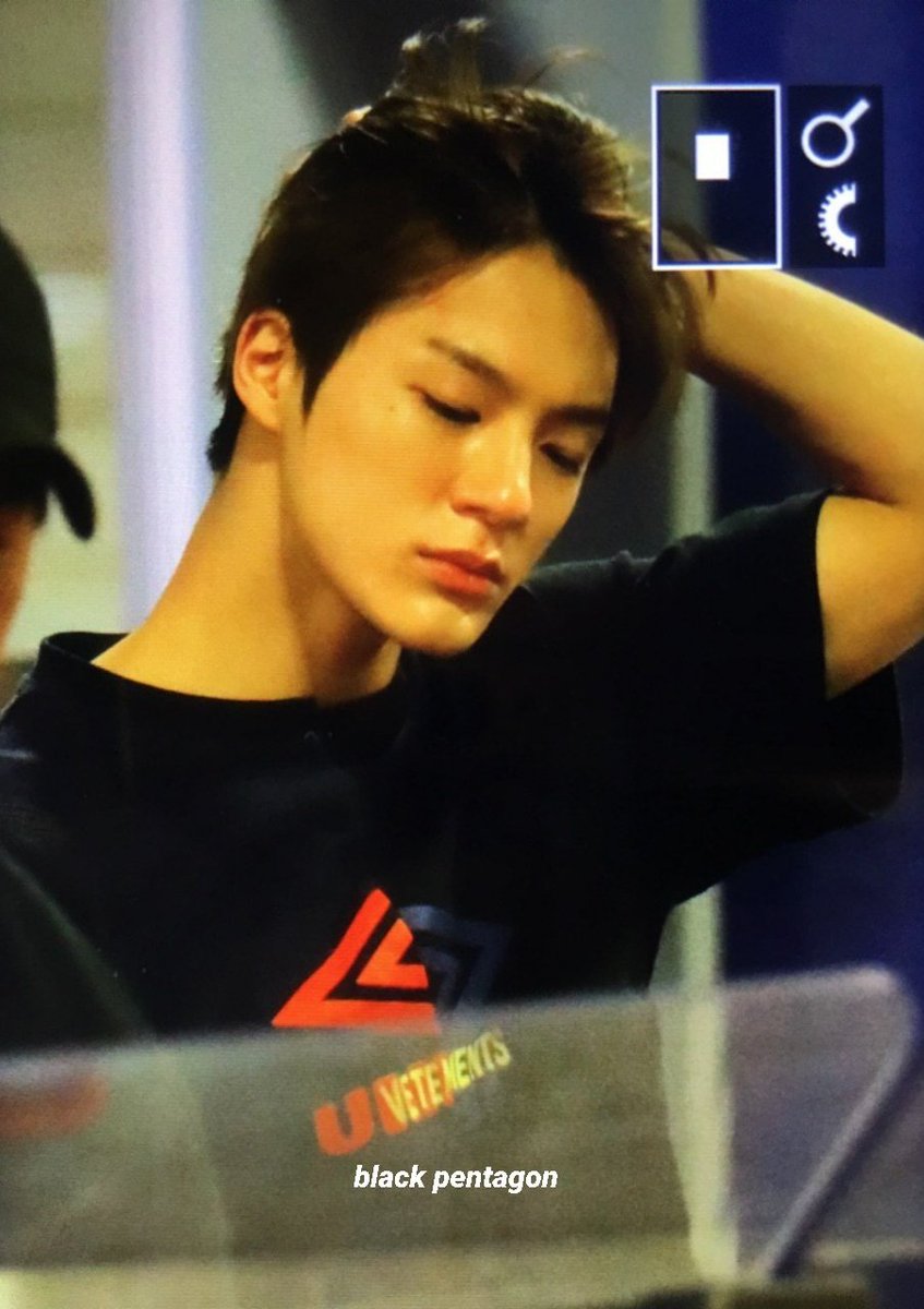 Các thành viên của NCT thường nói đùa rằng Jaehyun đeo đá tảng trong người. Anh chàng từng để lộ bắp tay rắn chắc trong chương trình Law Of The Jungle làm cộng đồng mạng lao đao đến tận bây giờ.