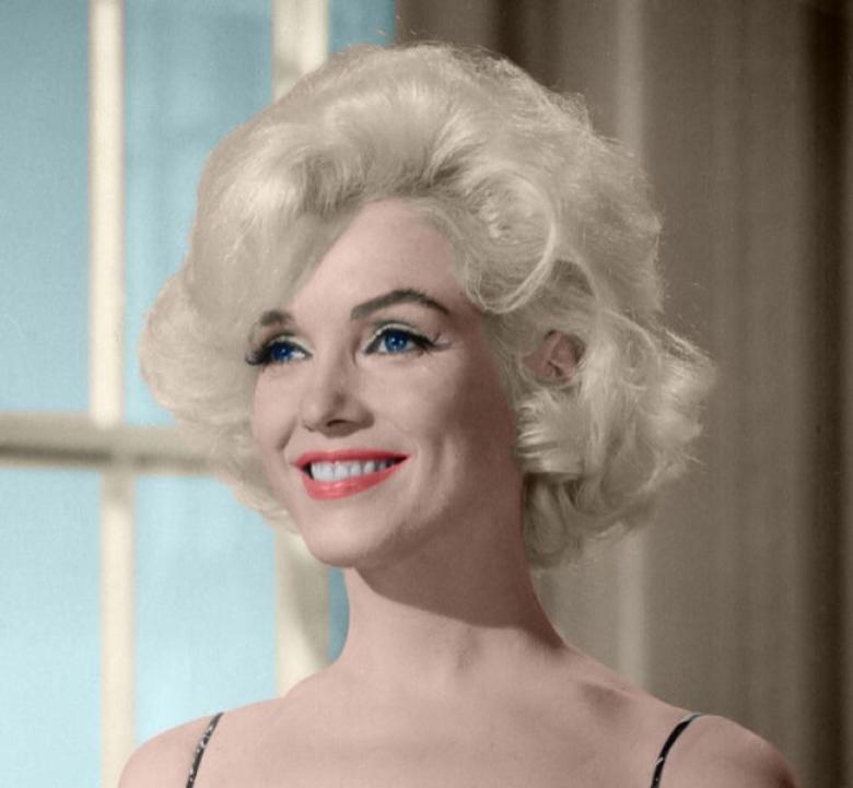 Sang những thập niên 60, phong cách trang điểm của Marilyn biến đổi hợp với thời đại, môi nhạt màu đào và phấn mắt ánh xanh.
