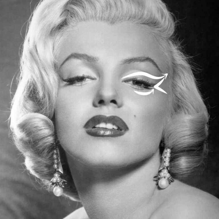 Một mẹo trang điểm nữa của Marilyn mà ít người biết đến đó là cô dùng chỉ kẻ mắt màu nâu vẽ một đường mờ ở mí dưới, phía ngoài của mình. Dưới ánh sáng nhất định, hàng mi giả dày và dài phía trên của Marilyn sẽ hắt bóng xuống hàng mi dưới. Vì vậy, mục đích của đường kẻ này là tạo ra một cái bóng “nhân tạo”, để cô có vẻ ngoài mê hoặc dưới mọi ánh sáng và góc độ.