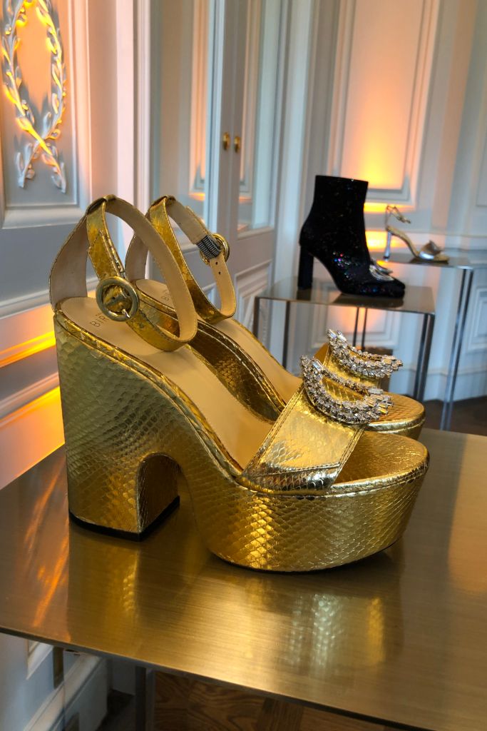 Cách đây 6-7 năm, giày cao gót phải có phần gót nhỏ, nhọn mới được xem là hợp thời trang thì hai năm trở lại đây, giày cao đế phẳng đã dần trở nên phổ biến. Xu hướng này được yêu thích nhất ở Paris, đặc biệt là trong các bộ sưu tập mới năm nay. Hãng Rochas chọn chất liệu nhung và đính pha lê lên giày, còn Alexandre Birman lại dùng chất liệu da bóng.