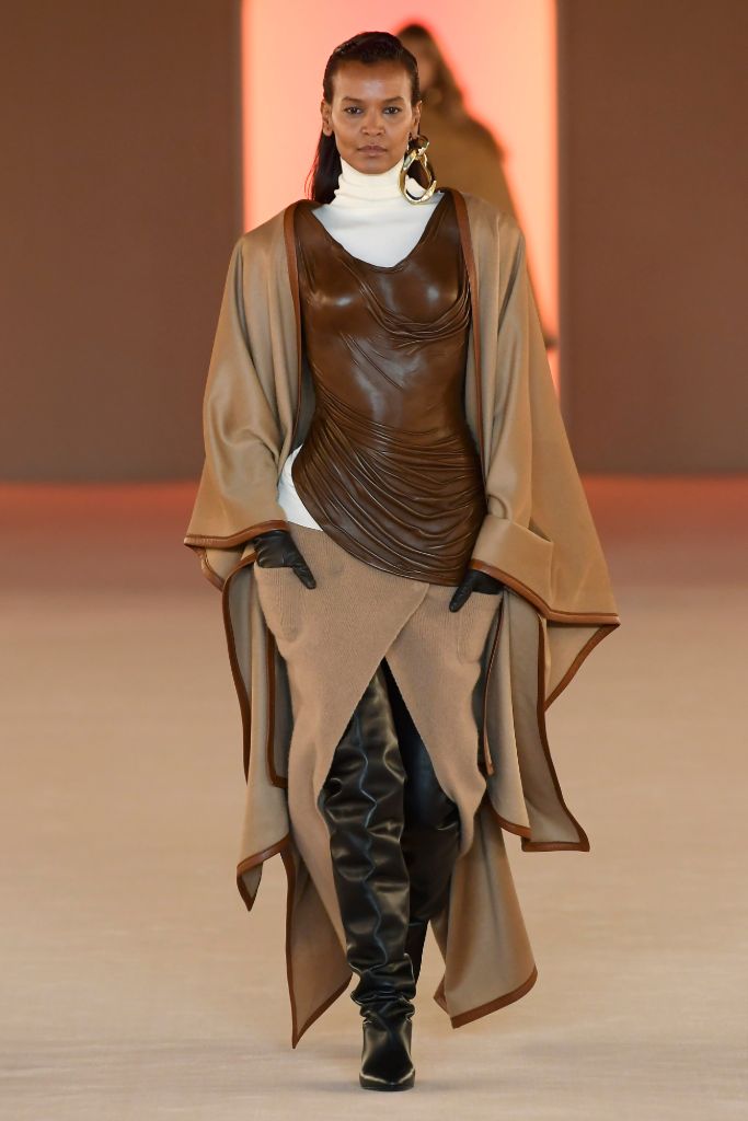 Nhắc đến mùa thu, chúng ta thường liên tưởng đến những con phố vắng vẻ, lá rơi trong gió và một tách cà phê nóng. Lấy cảm hứng từ sự lãng mạn và tĩnh lặng của mùa thu, Balmain, Olivier Roustrial, Chloé, Celine, Nina Ricci, Rochas, Kenzo đều chọn màu nâu cho bộ sưu tập mới.