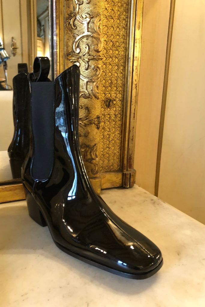 Hai chất liệu bóng được dùng nhiều nhất trong tuần lễ thời trang Paris năm nay là cao su và da nhân tạo (được cấp bằng sáng chế). Saint Laurent có đủ các sản phẩm bóng loáng như váy liền, váy bút chì, áo, giày đế bệt.