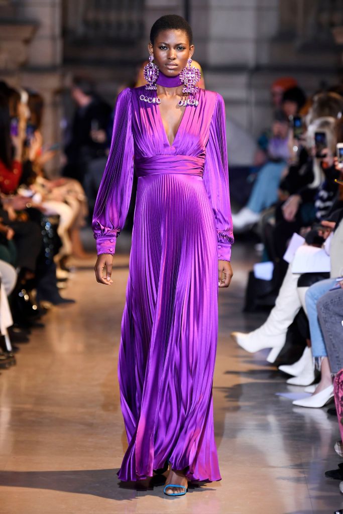Màu tím không chỉ là xu hướng trong năm nay mà còn được dự đoán chiếm lĩnh cả mùa xuân 2021 (với những phiên bản nâng cấp hơn). Bạn có thể tìm thấy những chiếc váy xếp ly tại Andrew Gn, Koche và các phụ kiện màu tím tại Dries Van Noten.