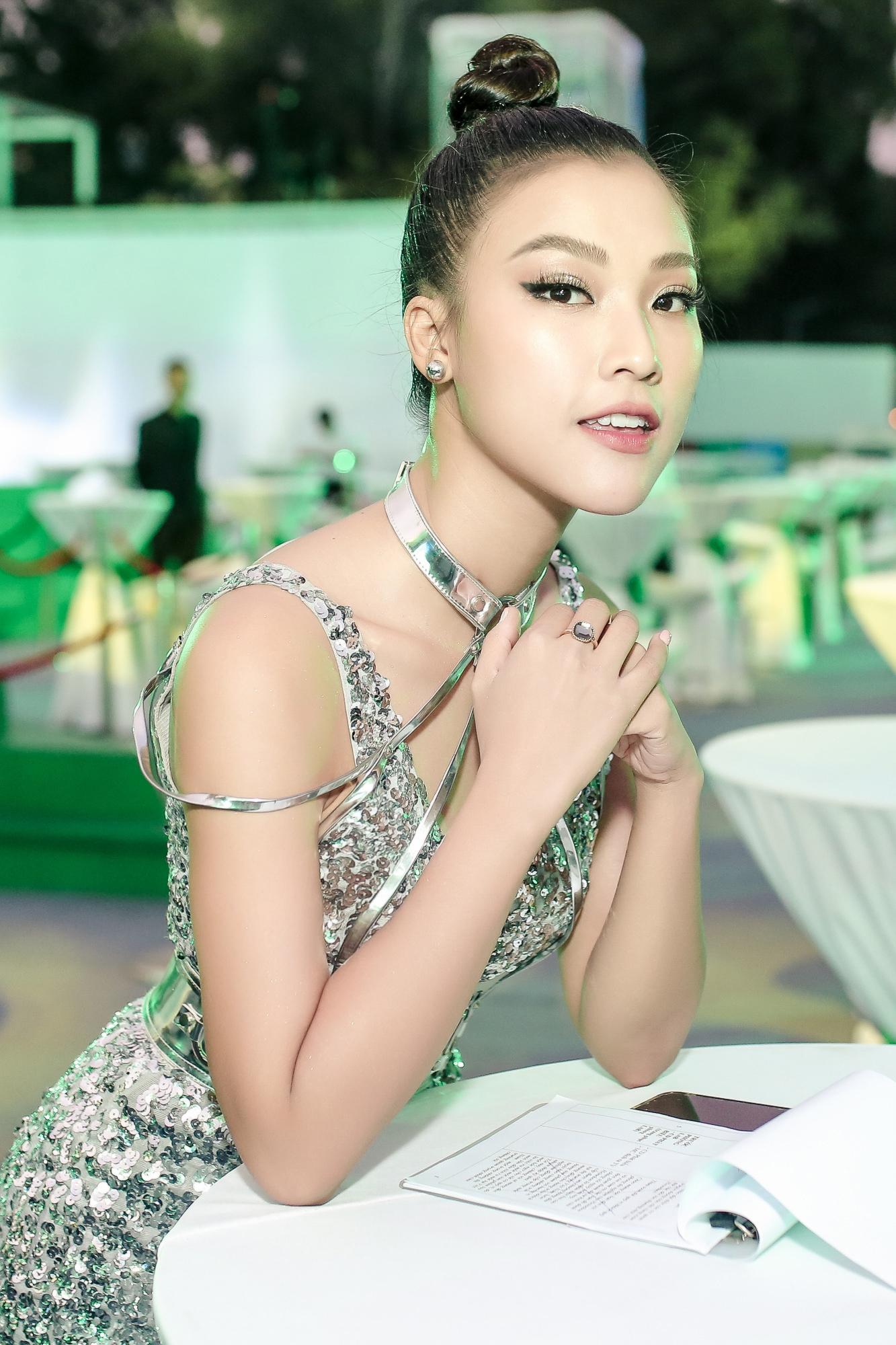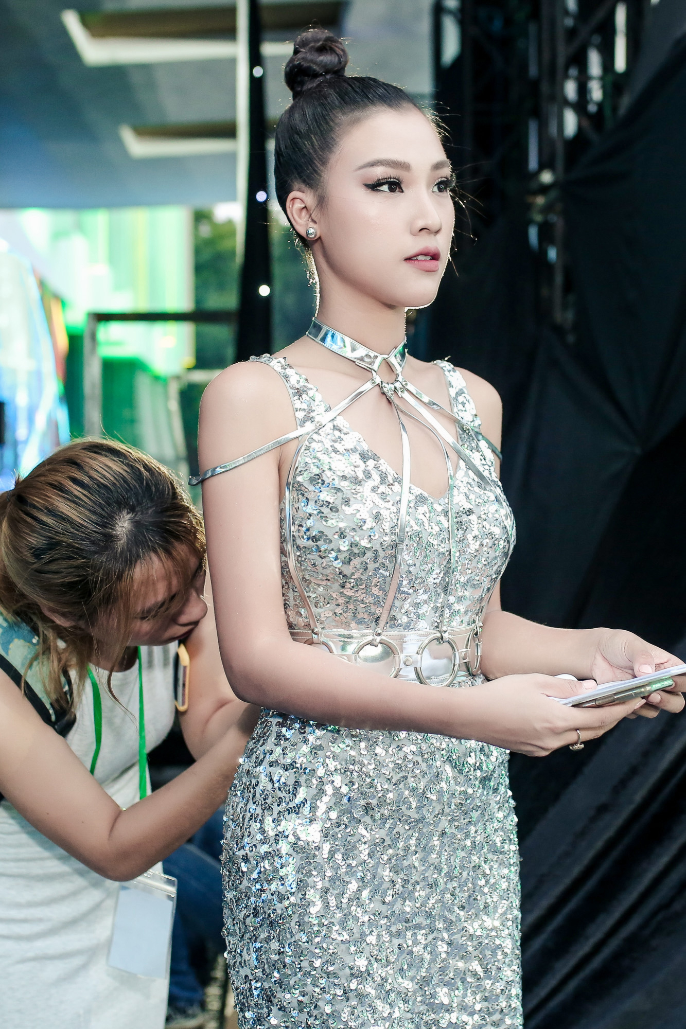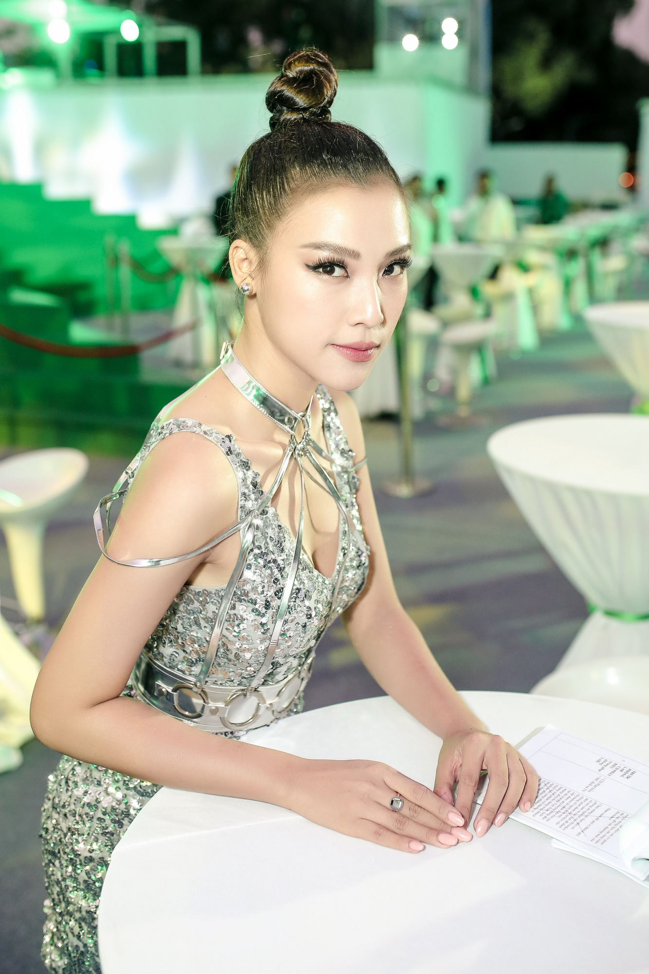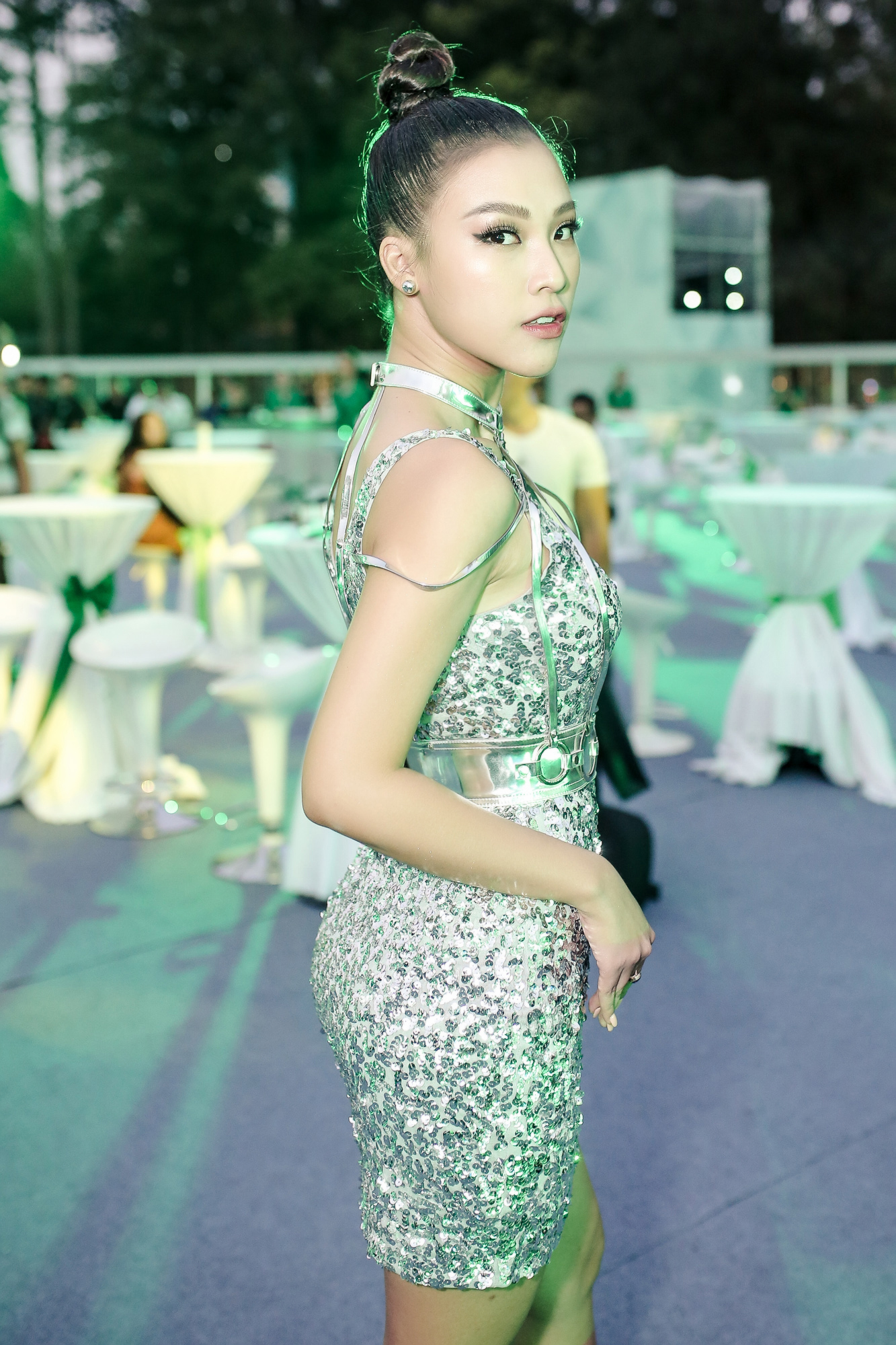 Chọn cho mình chiếc váy ánh bạc ôm sát, Hoàng Oanh khoe nhan sắc rạng rỡ khiến khán giả chẳng thể rời mắt ngắm nhìn.