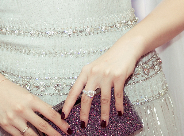 Xem ra trong cuộc đụng độ này, khó có thể so ra ai mới là người đẹp hơn. Nhưng xét tổng thể, nàng hậu có thêm điểm cộng rất lớn cho khoản phụ kiện, chiếc nhẫn kim cương là một item gây chú ý. Theo tiết lộ từ một người bạn của cô, đấy là chiếc nhẫn kim cương có giá gần 60 ngàn USD được mẹ cô dành cho con gái làm của hồi môn thời còn chưa lập gia đình.