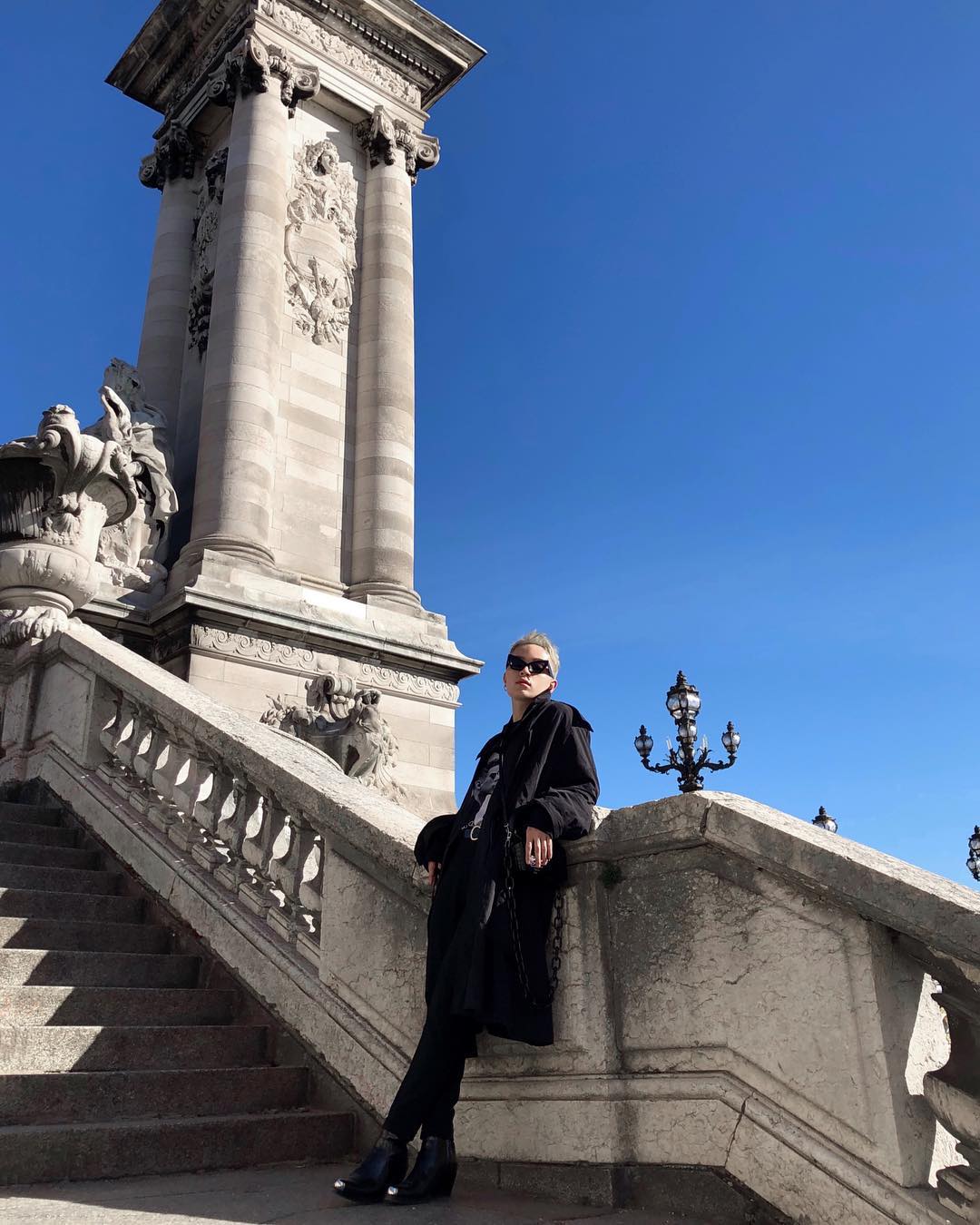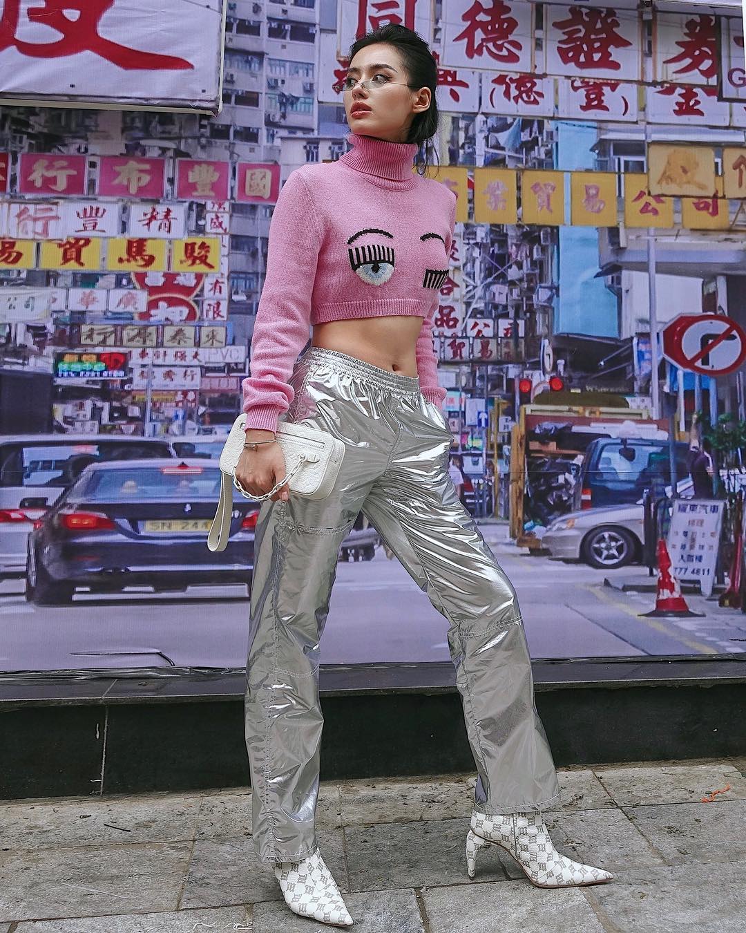Thả dáng tại Việt Nam chưa đủ, Khánh Linh The Face còn đem cả set đồ cực chất với tông bạx sáng sang Hong Kong chụp hình.