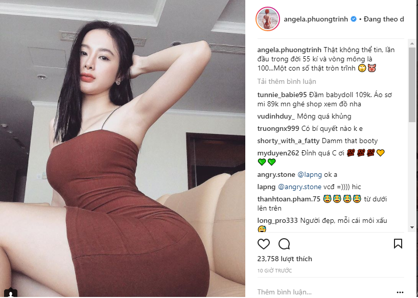 Đây là hình ảnh mới nhất Angela Phương Trinh đăng tải trên trang Instagram của mình. Cô cho biết vòng 3 hiện tại của mình vừa tròn 1 mét. Có thể nói Angela Phương Trinh là một trong những chân dài Vbiz chăm chỉ khoe thân không biết chán.
