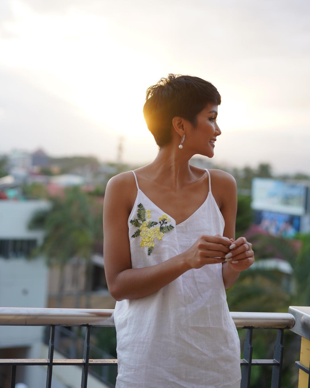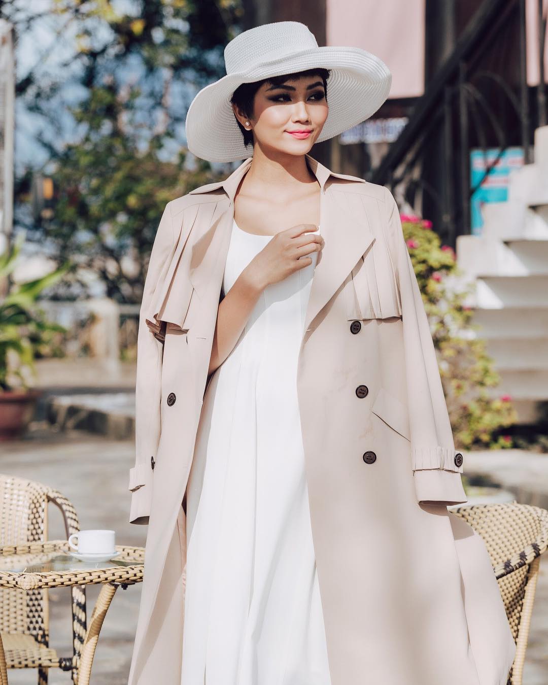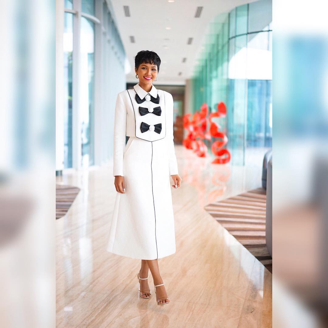 Trong thời gian tham gia Miss Universe 2018, H’Hen Niê từng rất nhiều lần lựa chọn những bộ trang phục màu trắng. Từ chiếc váy dài cách tân với các hoạ tiết thổ cẩm cho đến bộ suit vào vòng phỏng vấn kín. Từ chiếc váy ánh kim màu trắng trên sân khấu chung kết cho đến bộ váy ấn tượng khi kết thúc cuộc thi, H’Hen Niê đều thu hút mọi ánh nhìn.