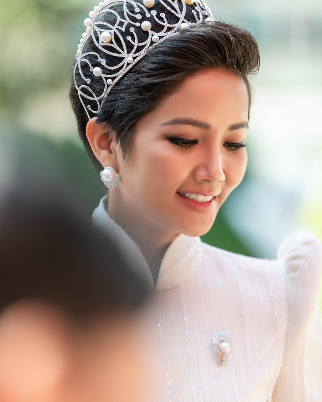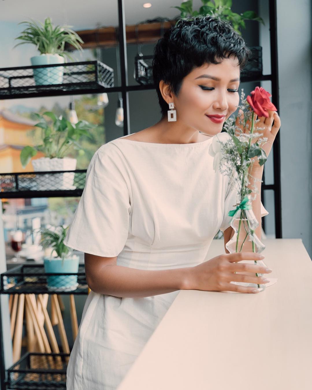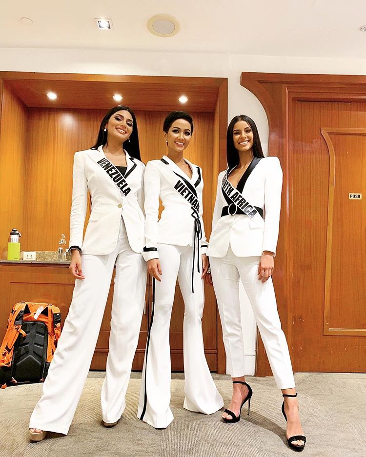 Trong thời gian tham gia Miss Universe 2018, H’Hen Niê từng rất nhiều lần lựa chọn những bộ trang phục màu trắng. Từ chiếc váy dài cách tân với các hoạ tiết thổ cẩm cho đến bộ suit vào vòng phỏng vấn kín. Từ chiếc váy ánh kim màu trắng trên sân khấu chung kết cho đến bộ váy ấn tượng khi kết thúc cuộc thi, H’Hen Niê đều thu hút mọi ánh nhìn.