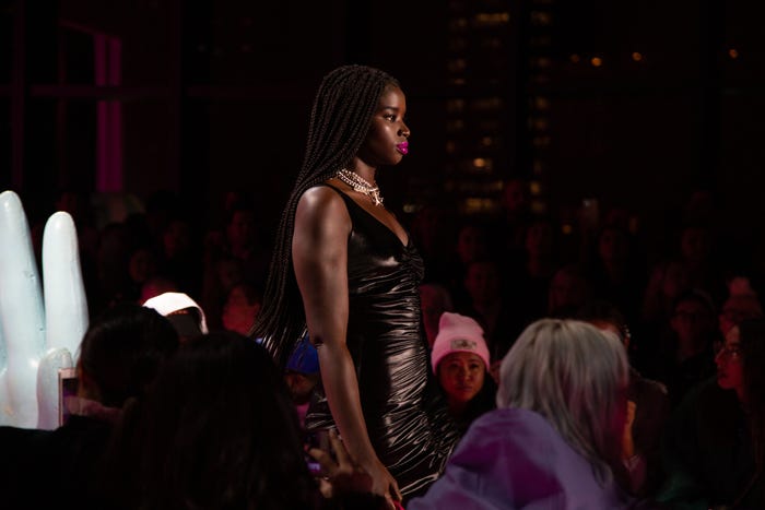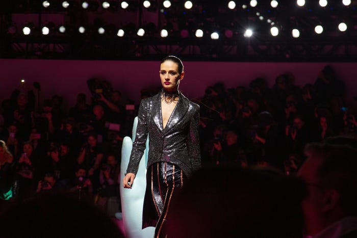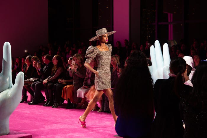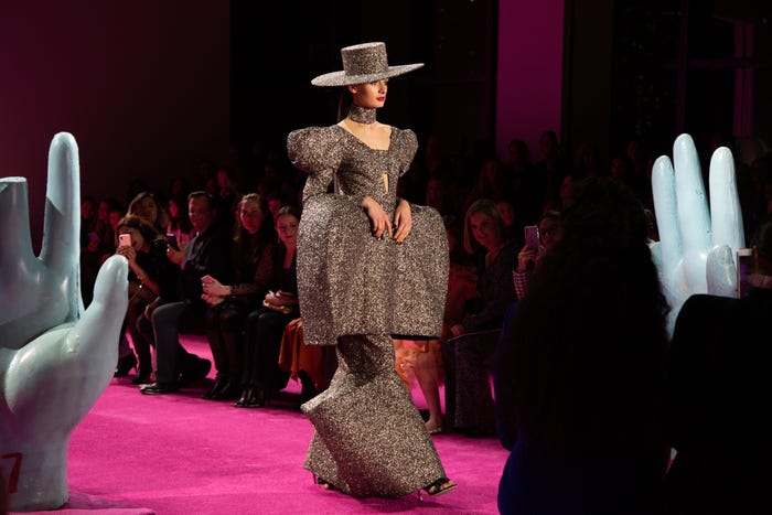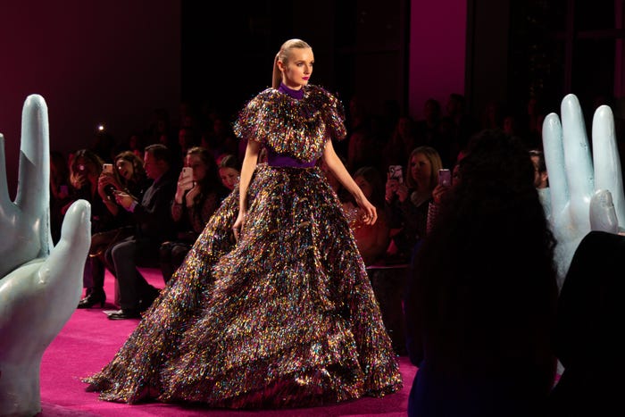 Bộ sưu tập có rất nhiều chất liệu vải sáng bóng. “Mọi thứ trông có vẻ lỏng hoặc ướt hoặc óng ánh. Tất cả các loại vải có ánh sáng thực sự tạo ra nét sống động” - Siriano nói với Insider.