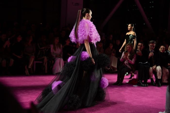 Đối với bộ sưu tập Thu/Đông 2020, Siriano cho biết anh lấy cảm hứng từ bộ phim mới của DC ‘Birds of Prey’ và thế giới siêu thực. Đường băng lần này được phủ bởi màu đen trắng, điểm xuyết màu hồng neon trên môi, trên áo người mẫu. Nhà thiết kế đưa khán giả vào một không gian hiện đại, đơn giản nhưng vô cùng huyền bí. Dưới đây là những bức ảnh hiếm hoi về bộ sưu tập của Christian Siriano tại Tuần lễ thời trang New York được Business Insider ghi lại.