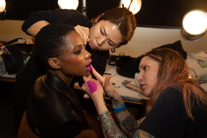 Trong khi đó, phòng thử đồ bận rộn với nghiệp vụ trang điểm, chụp hình báo chí và các người mẫu đổ xô đến buổi tổng duyệt.