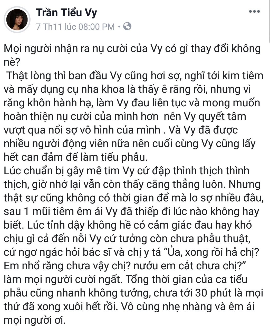 Nụ cười rạng rỡ sau tiểu phẫu, vậy là giờ Tiểu Vy có thể cười thật tươi mà chẳng e dè nữa rồi.