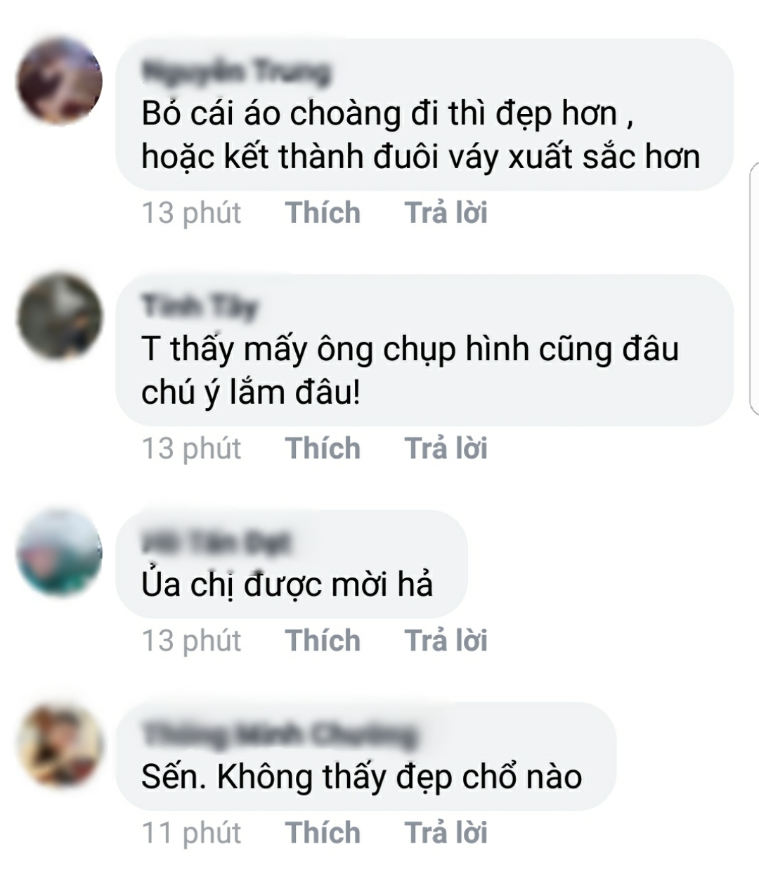 “Sến, không thấy đẹp” hoặc “bỏ áo choàng đi”…