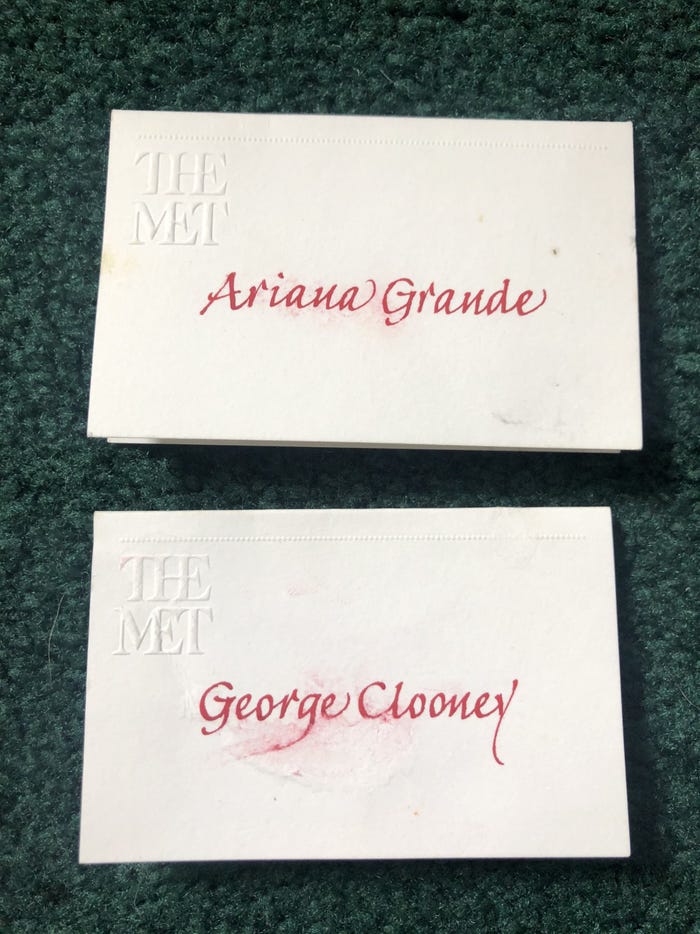 Năm 2018, thiệp mời cho khách đều được viết tay. Một nhân viên chữ đẹp đã ghi tên khách mời lên 600 tấm thiệp.