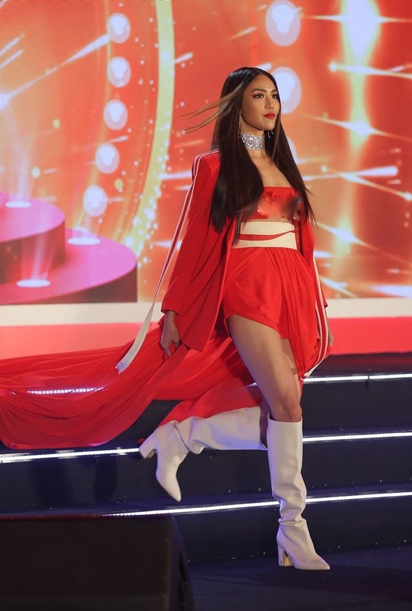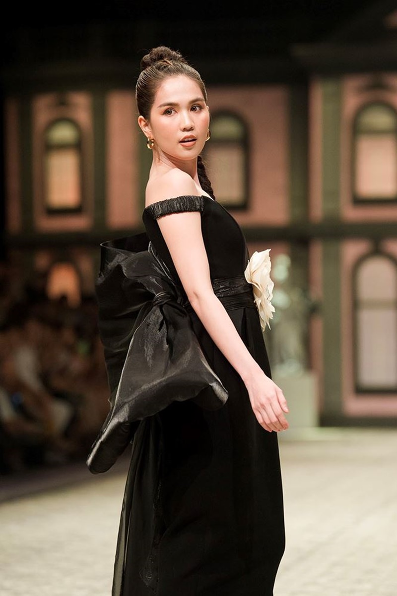 Đảm nhận vị trí vedette trong một show thời trang, chân dài khoe bụng phẳng, thần thái chuyên nghiệp và dáng vóc chuẩn, “đập tan” tin đồn bầu bí.