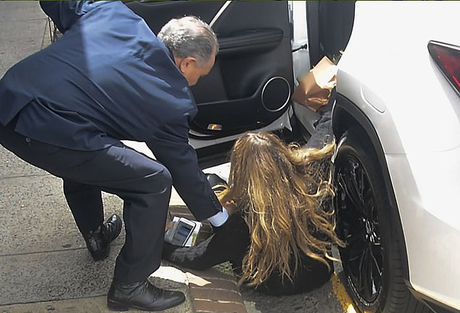 Cú ngã này có vẻ rất nặng, bởi sau đó người đẹp không thể tự mình đứng lên mà phải nhờ vào sự giúp đỡ của tài xế.