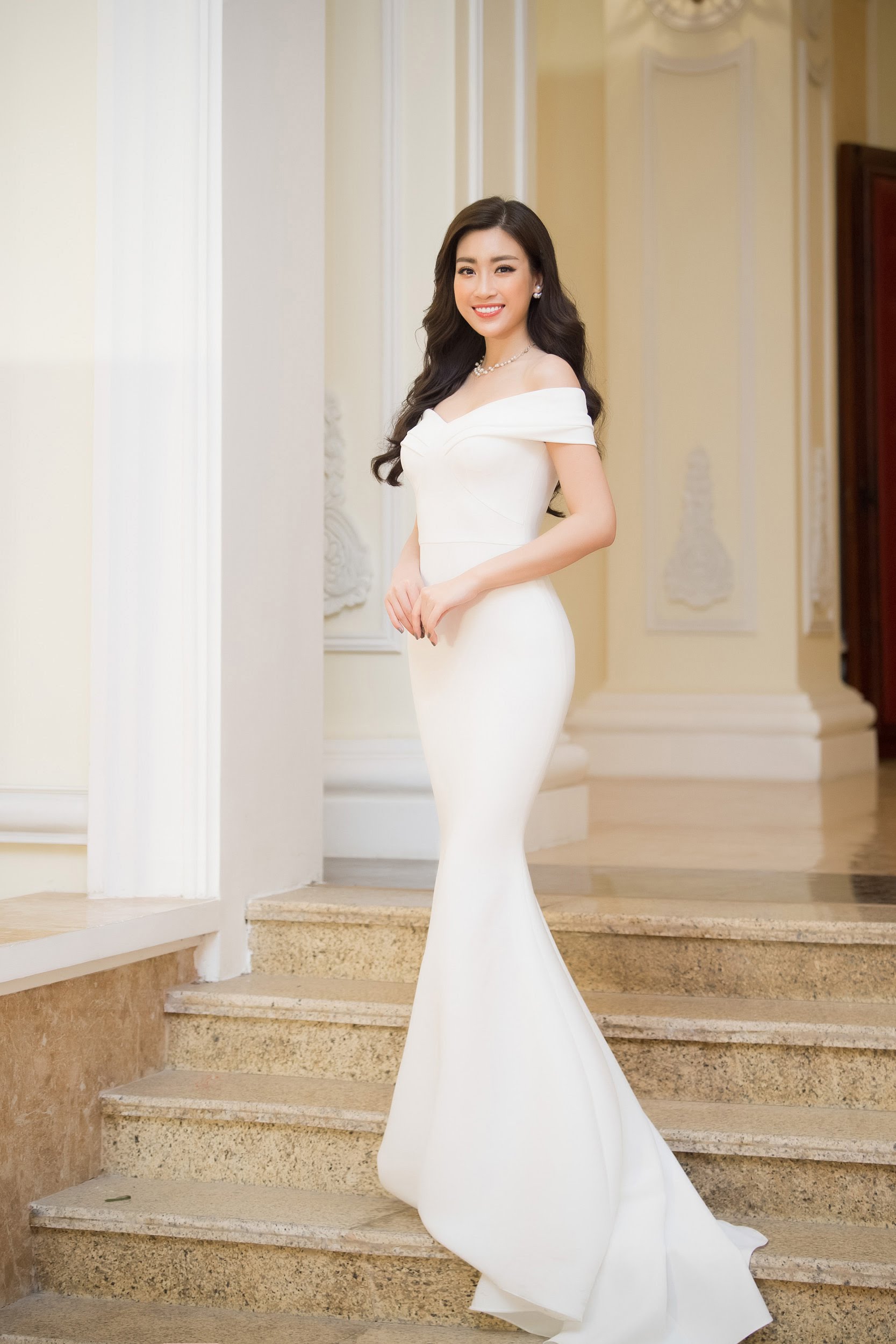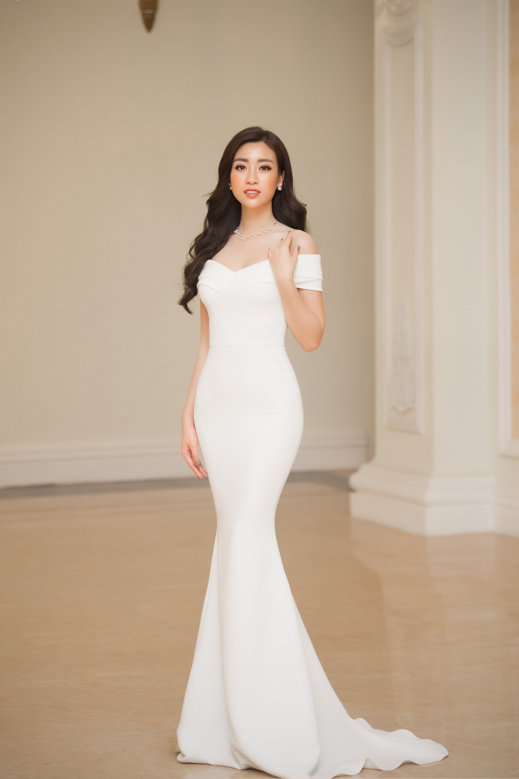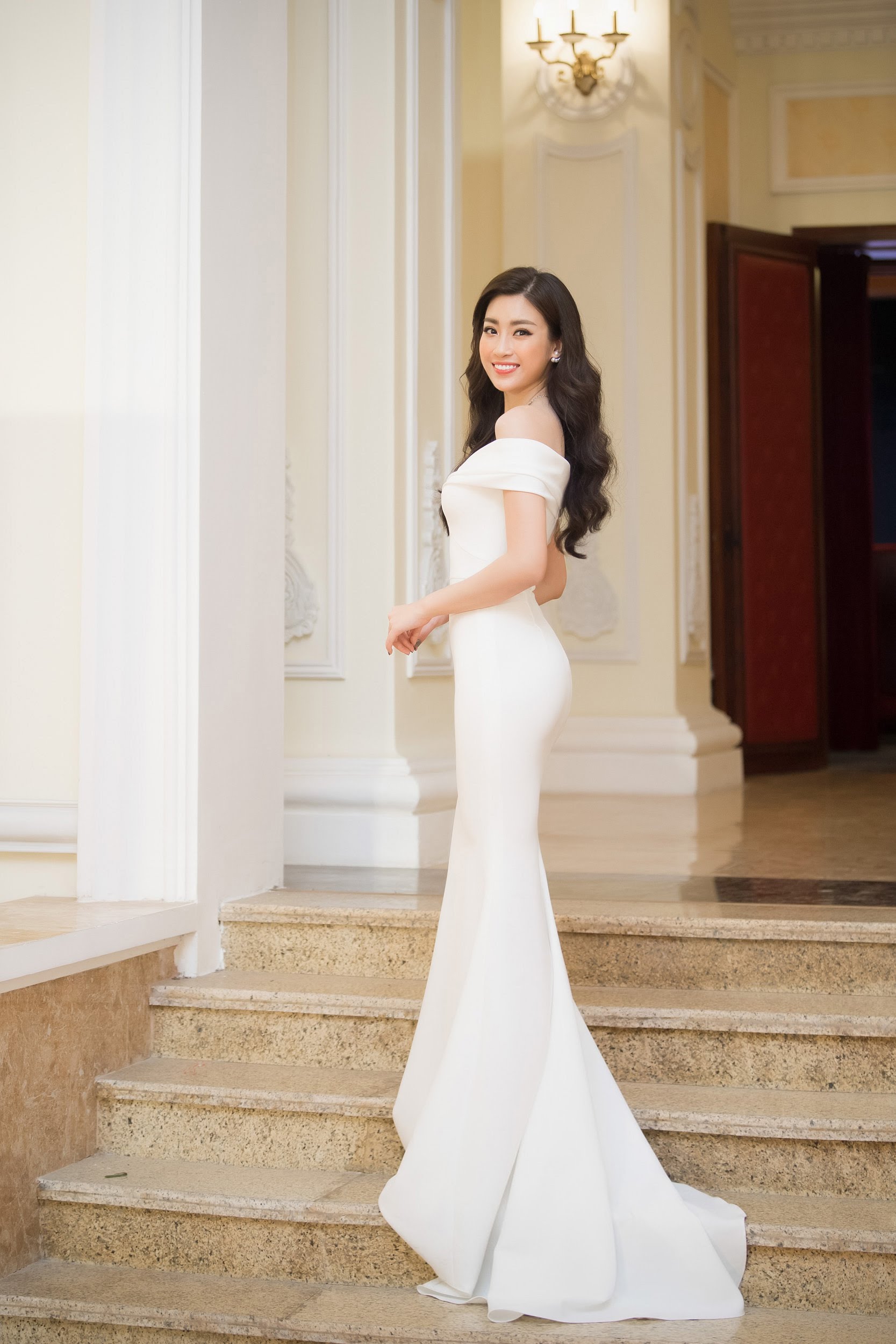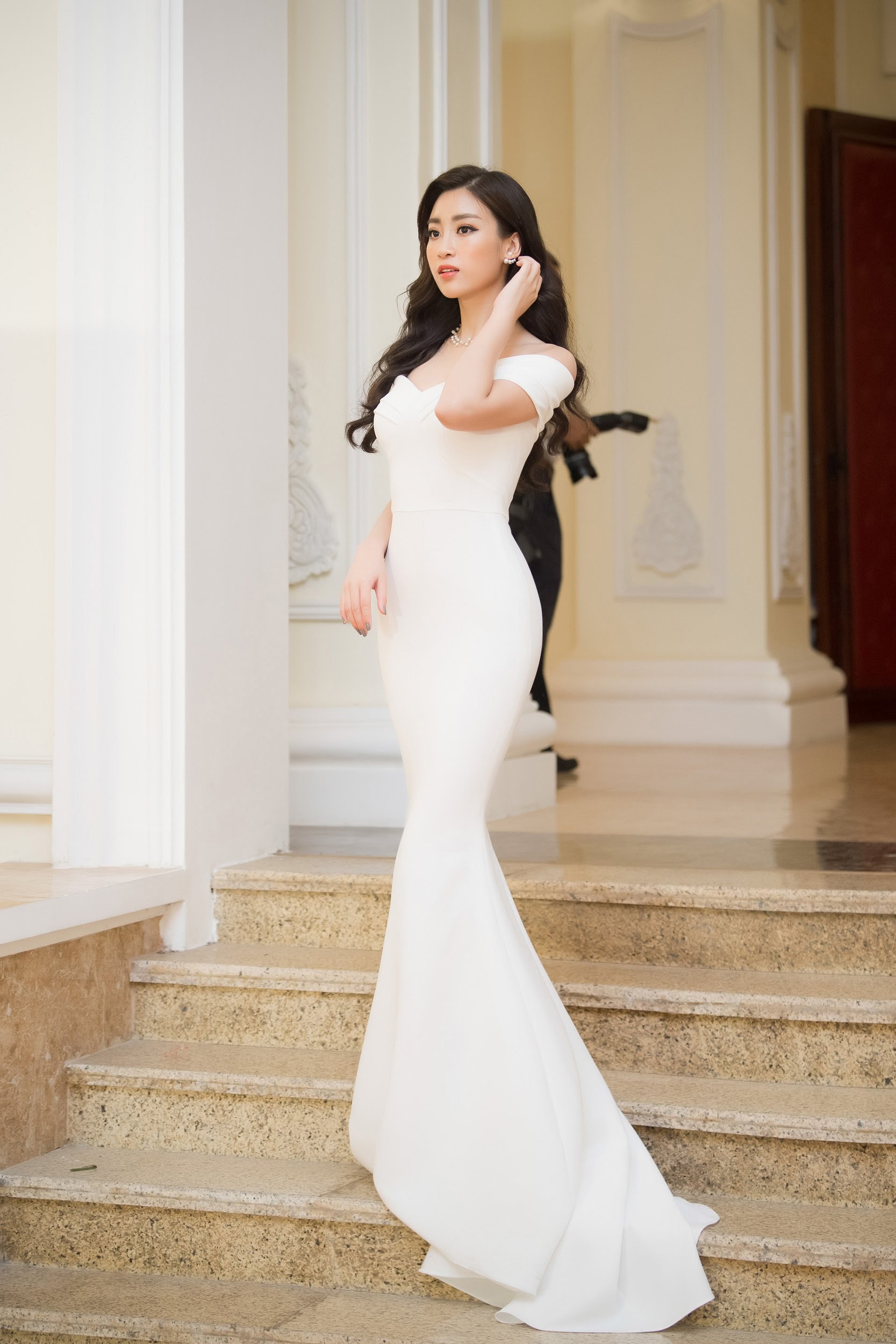 Đến với buổi lễ trao giải, hoa hậu “gây thương nhớ” bằng sự thanh thoát của mình trong trang phục đầm trắng của NTK Lê Thanh Hòa.