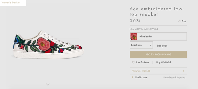 Ngoài ra, Gucci sneaker còn có một phiên bản thêu đính hoa nữ tính, được bán với giá 695$ - hơn 13 triệu đồng.