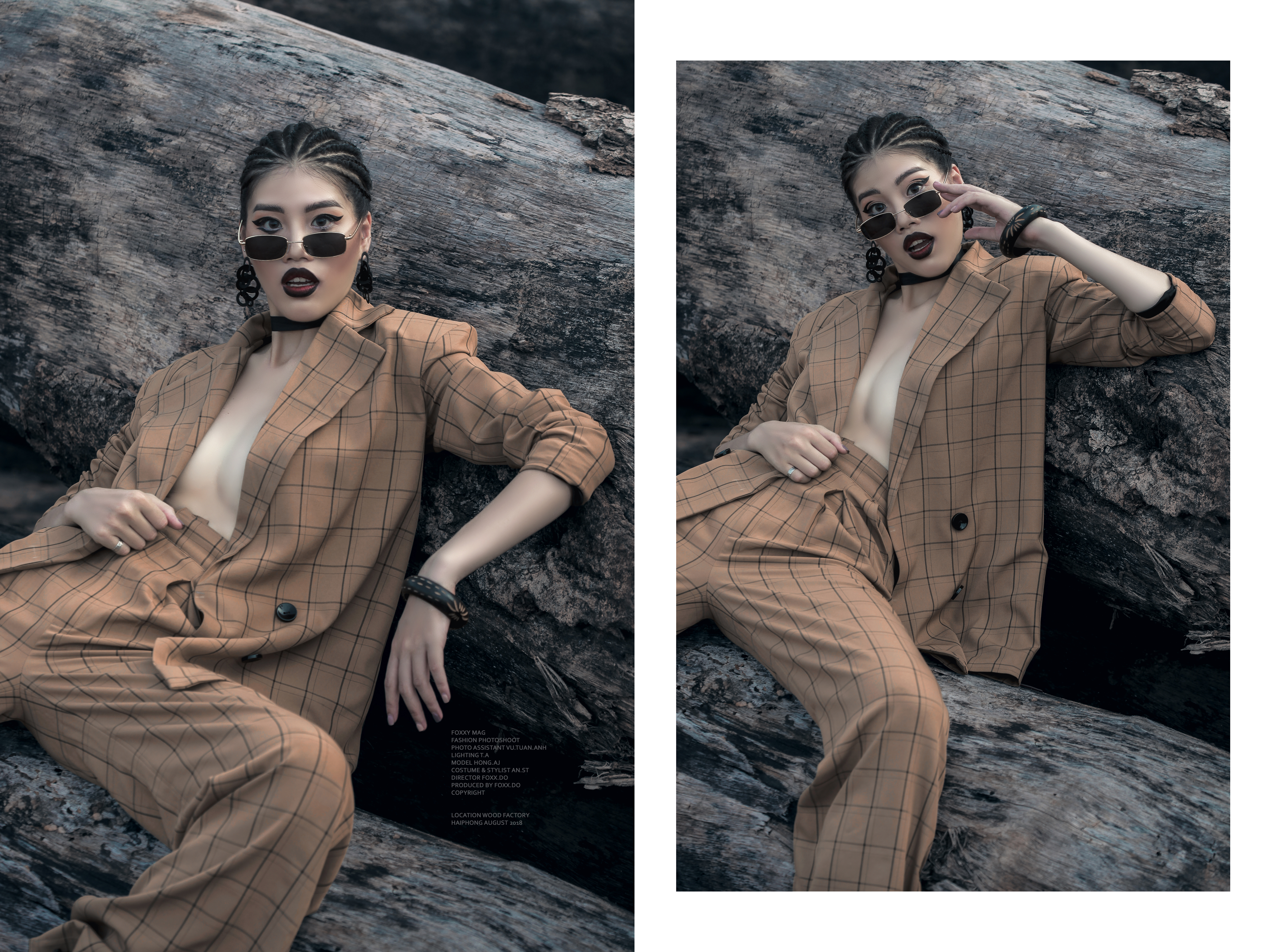 Diện bộ suits phom rộng theo phong cách không nội y cùng kiểu tóc tết, cô nàng Nguyễn Thị Hồng khoe dáng vẻ thời thượng, cá tính hết mực.