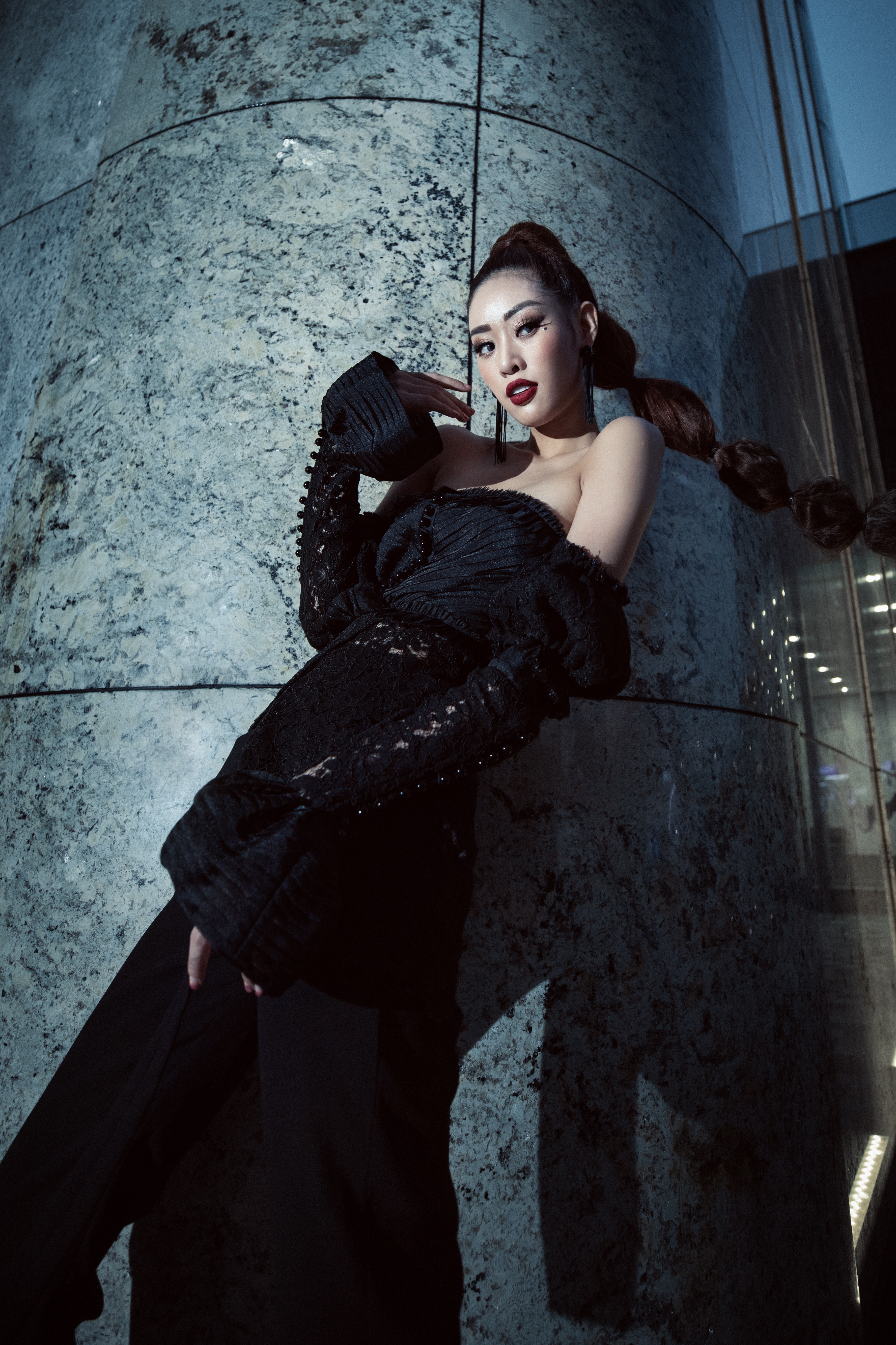 Thế nhưng, chẳng phải vì vậy mà người đẹp chỉ đóng khung mình vào một hình ảnh. Mới đây, chân dài tiếp tục khiến khán giả mắt chữ A, miệng chữ O khi tung bộ ảnh cực chất. Trong đó, Khánh Vân diện đúng sắc đen cá tính, tạo dáng giữa không gian là những tòa nhà chọc trời, đem lại cảm giác hiện đại, futuristic - vị lai.