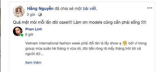 Mấy ngày qua, cộng đồng mạng đang rúng động vì đoạn chia sẻ của người mẫu Phan Linh “tố” BTC Tuần lễ thời trang Quốc tế Việt Nam “quỵt” tiền người mẫu. Theo đó, chân dài cho biết, tiền cat-xe từ show xuân hè hồi tháng 4 vừa rồi, đến nay vẫn chưa nhận được.