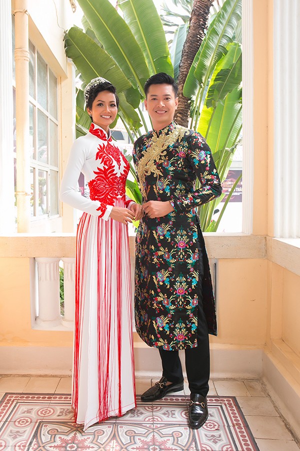 Tại sự kiện, H'Hen Niê còn mặc một chiếc áo dài khác. Hai chiếc áo dài hoàn toàn khác nhau nhưng tương đồng ở việc đều tạo điểm nhấn bởi các chi tiết hoa văn cầu kỳ.