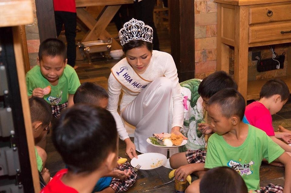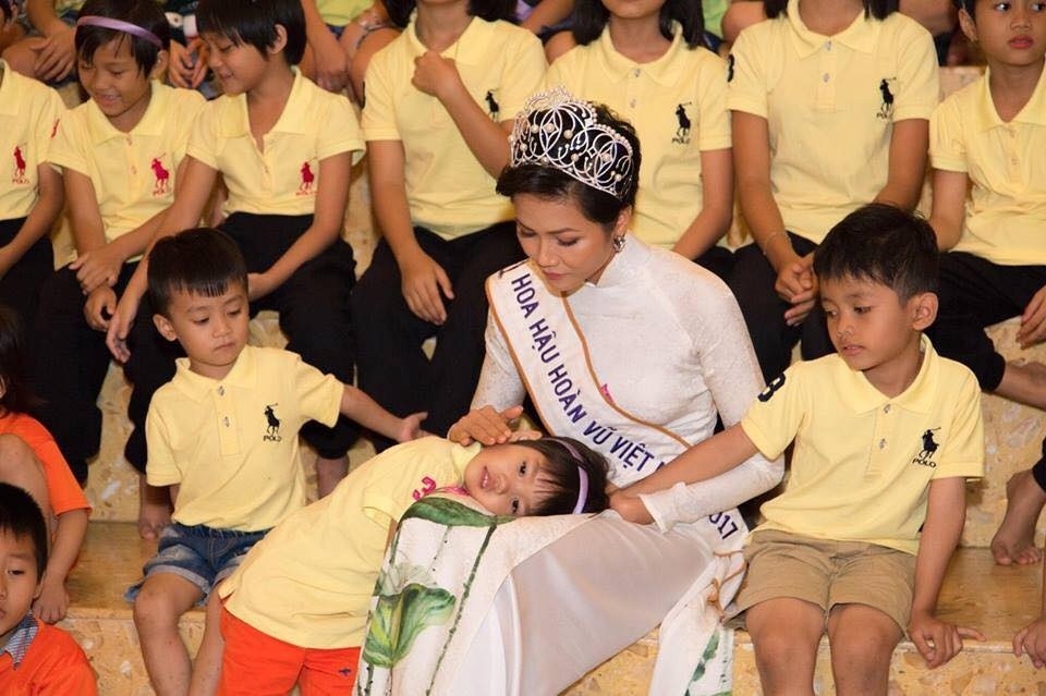 Có rất nhiều lời chỉ trích vì cho rằng hoa hậu cần mặc trang phục đơn giản hơn là mang áo dài trắng và đội vương miện như thế này. Nhưng sau tất cả, H'Hen cho biết đây là mong muốn của những đứa trẻ tội nghiệp, chúng muốn nhìn thấy cô xuất hiện như một nàng công chúa!