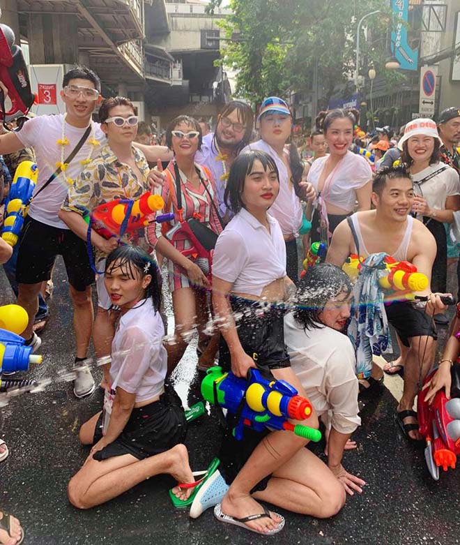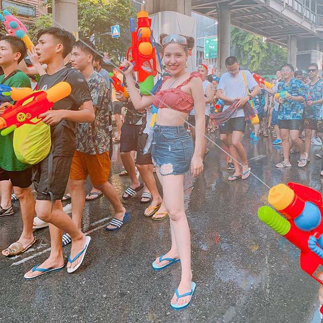 Cùng với đó, các sao Việt cũng rủ nhau có mặt tại Thái Lan để hòa vào không khí vui nhộn dịp lễ hội. đúng với tinh thần “té nước”, mỗi ngươi đều chọn cho minh những bộ cánh thoải mái, đơn giản để có thể tự tin vui chơi hết cỡ.