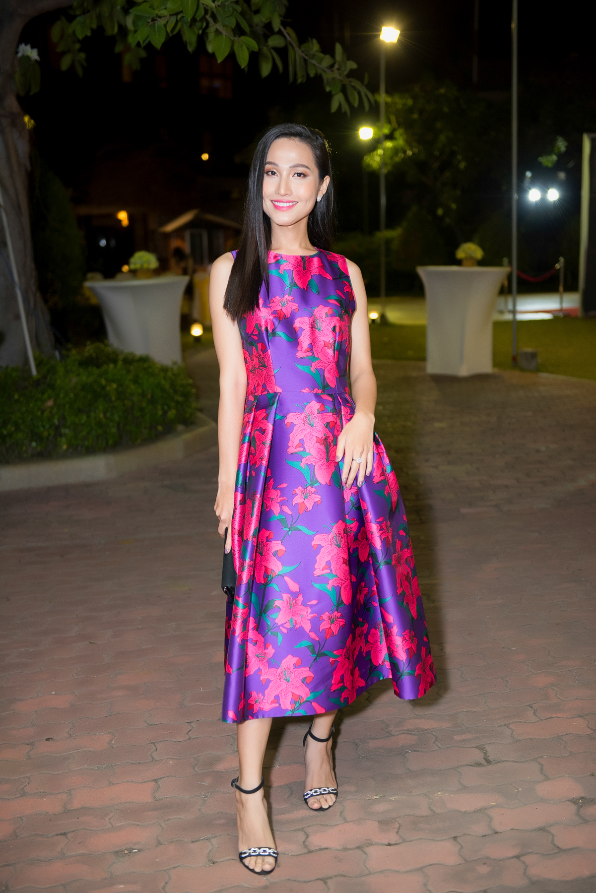 Tham dự sự kiện còn có Hoài Sa, mỹ nhân chuyển giới của The Voice và The Tiffany chọn cho mình chiếc váy xòe duyên dáng của NTK Đỗ Mạnh Cường in ấn họa tiết hoa ly trang nhã, thanh tân. Cô nàng để kiểu tóc dài đơn giản nhưng vô cùng phù hợp với tổng thể.