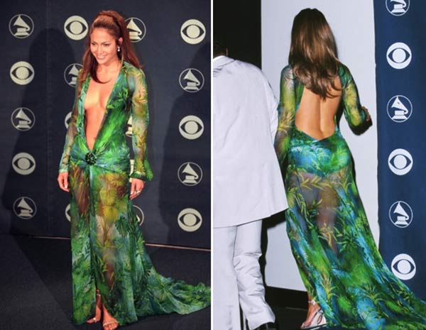 Năm 2000, J. Lo đã khiến lễ trao giải Grammy lần thứ 42 trở nên nóng hơn bao giờ hết khi thả dáng trong chiếc váy xuyên thấu có đường xẻ ngực dưới tận rốn cực kỳ táo bạo.