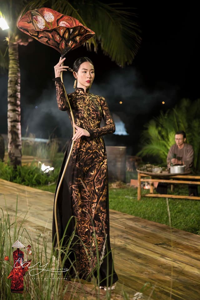 Vóc dáng đẹp cùng thần thái chuẩn khiến cô được chọn trình diễn trong show áo dài của NTK Đinh Văn Thơ, được diễn tại Hội An hồi tháng 12 năm ngoái.