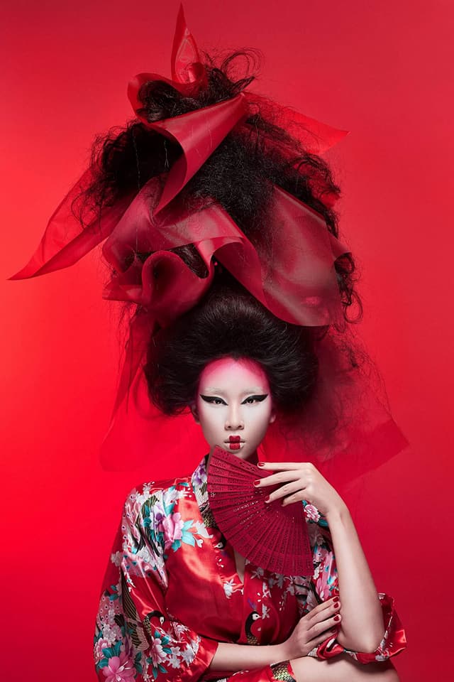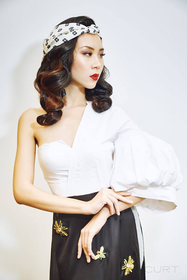 Tạo hình ấn tượng, đậm nét Châu Á trong một sáng tạo của nhà mốt Kelly Bùi.