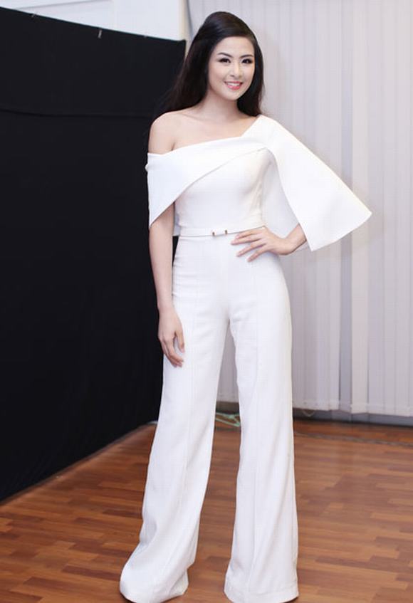 Một mỹ nhân khác cũng được điểm cộng nhân cách là hoa hậu Ngọc Hân, tham dự một show diễn thời trang của tuổi teen, cô nàng ghi điểm với outfit trắng bất đối xứng.
