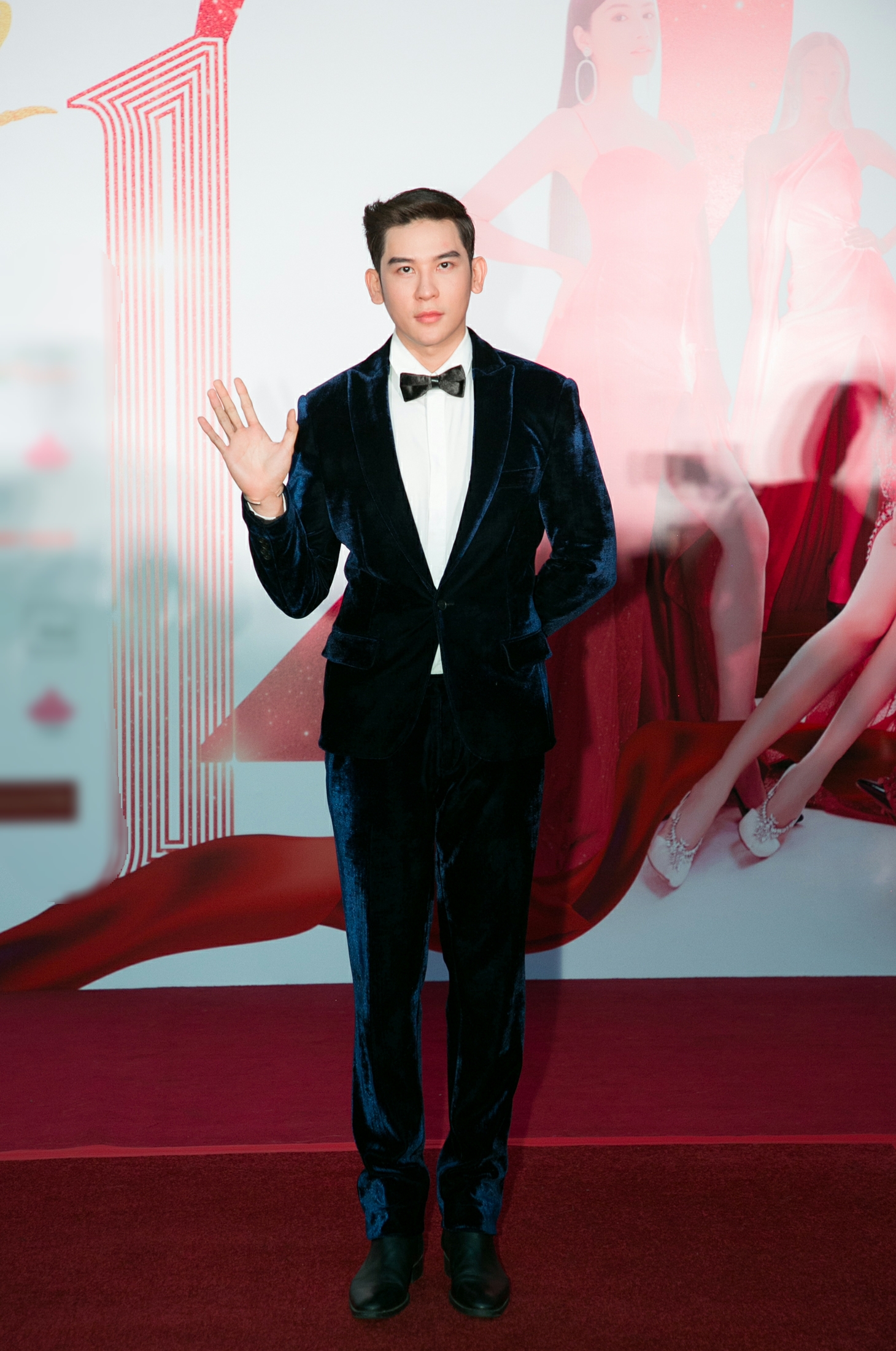 Siêu mẫu Minh Trung lại chọn bộ vest xanh đen để ghi dấu ấn.