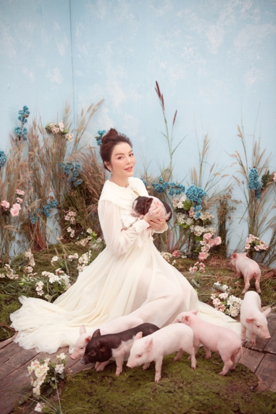 Cùng với đó, các sao Việt cũng đua nhau chụp ảnh cùng chú lợn, đơn cử như Lý Nhã Kỳ.
