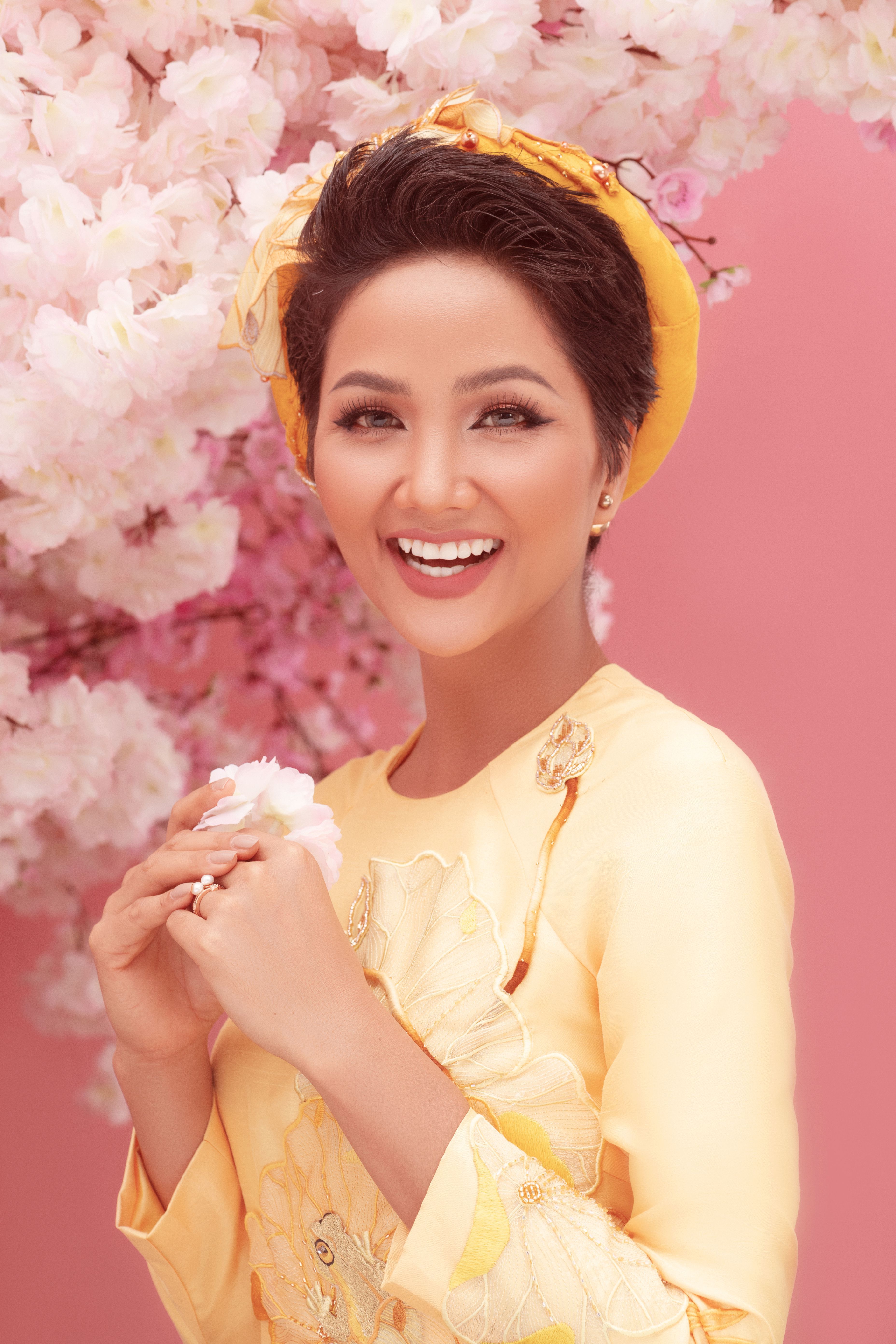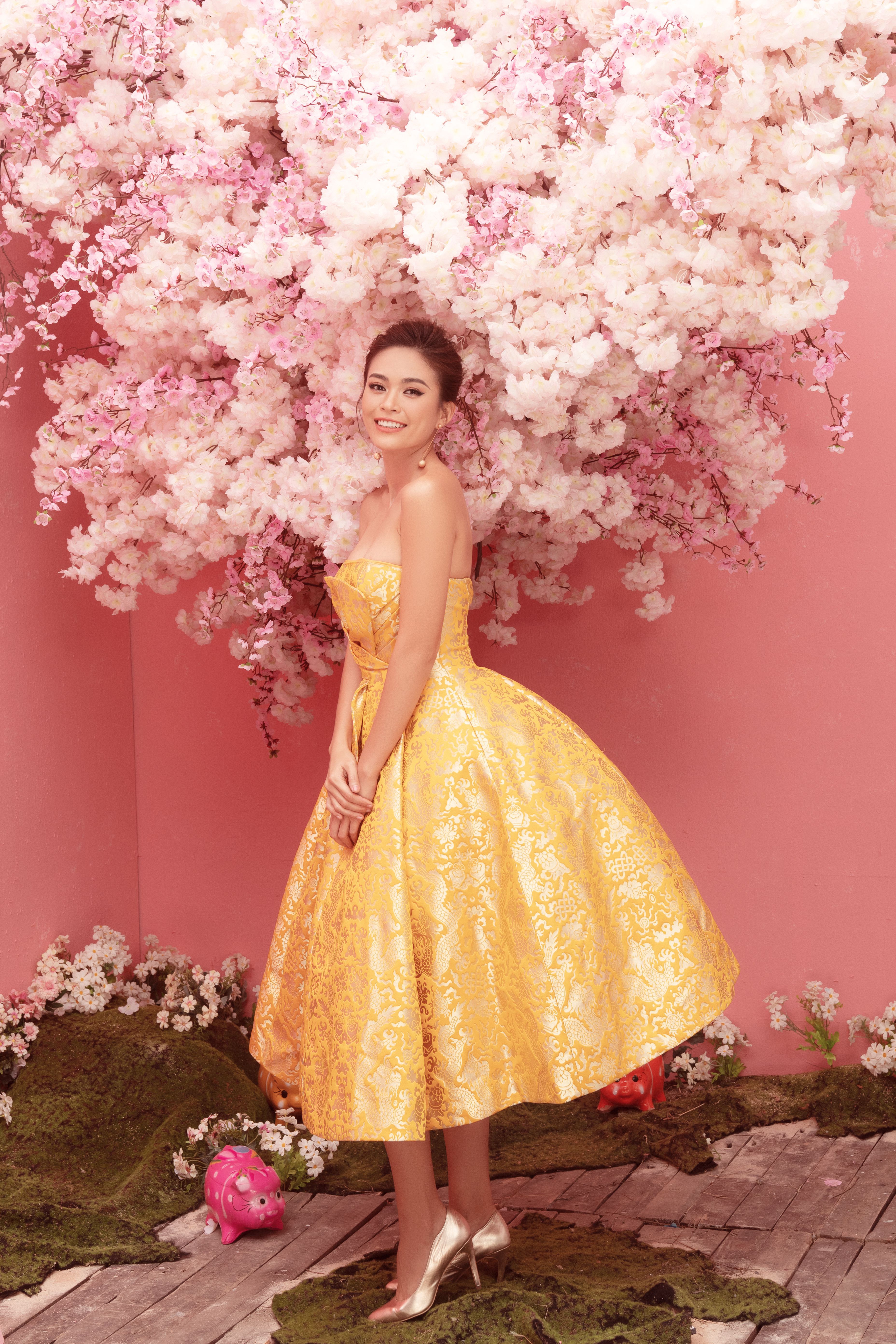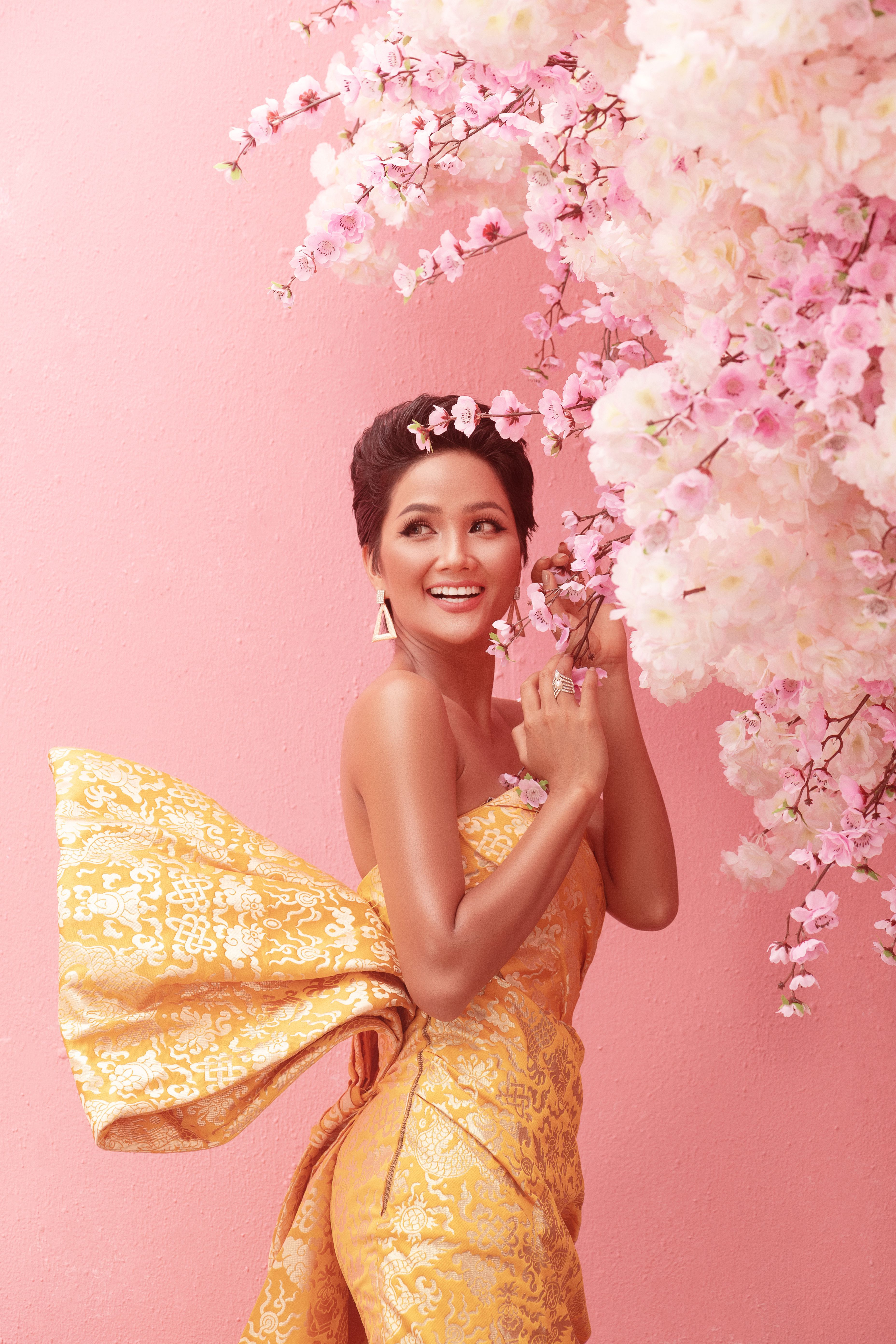 Vàng là một trong những màu sắc được yêu thích của mùa xuân, vì vậy Hoa hậu H’Hen Niê, Á hậu Hoàng Thùy, Á hậu Mâu Thủy muốn gửi đến khán giả lời chúc một năm mới nhiều niềm vui, tài lộc, thành công và vạn sự như ý.