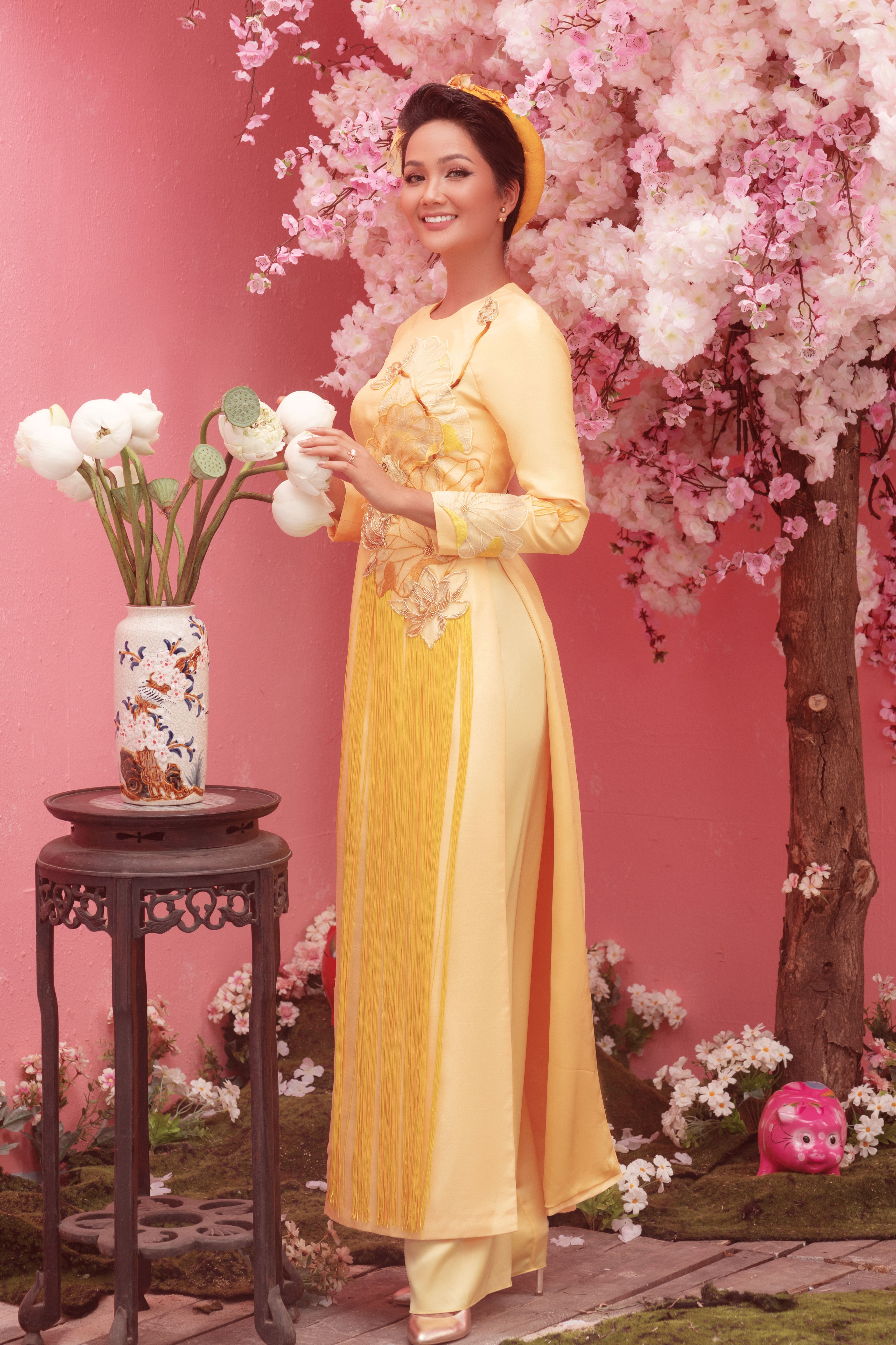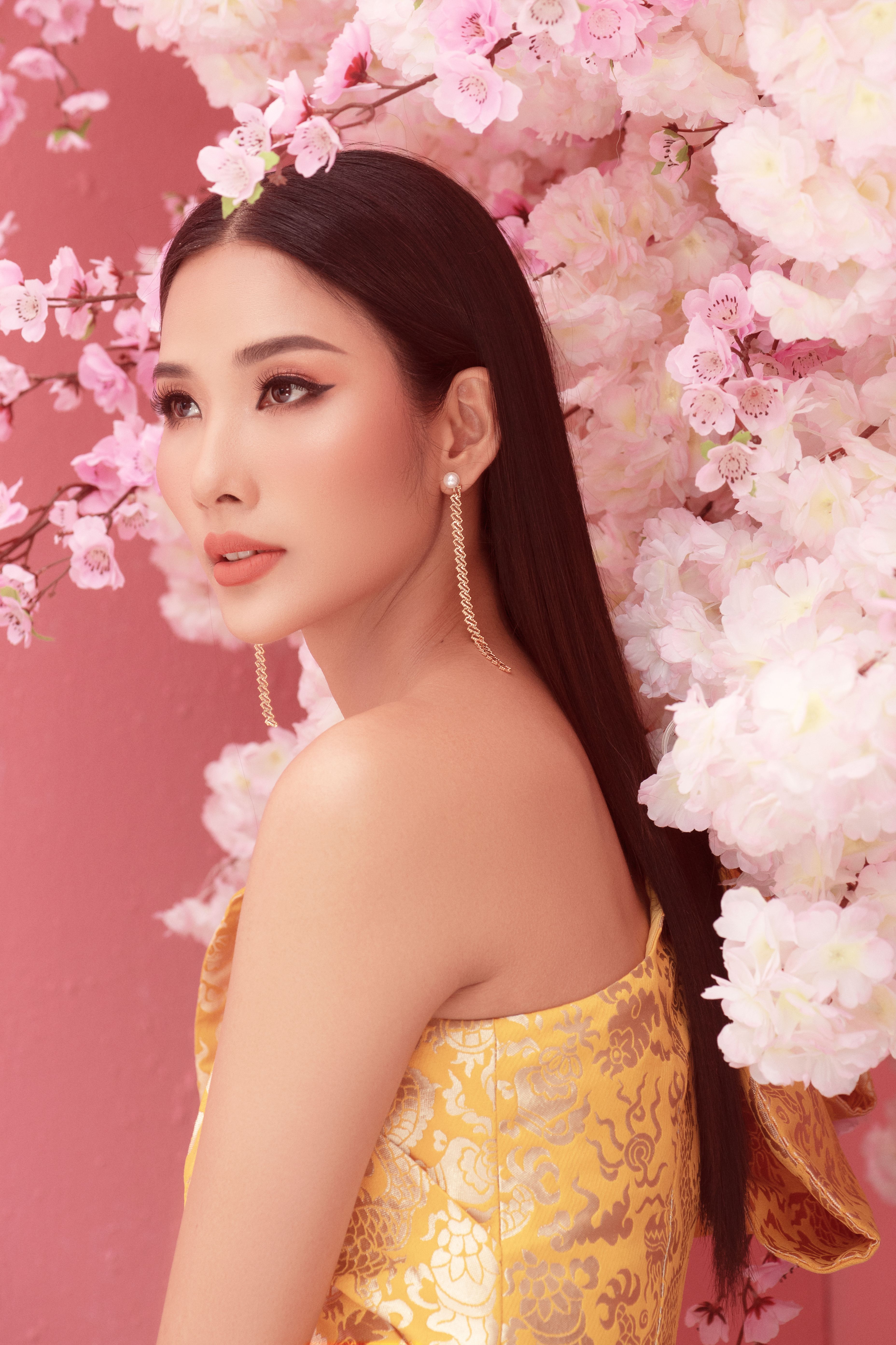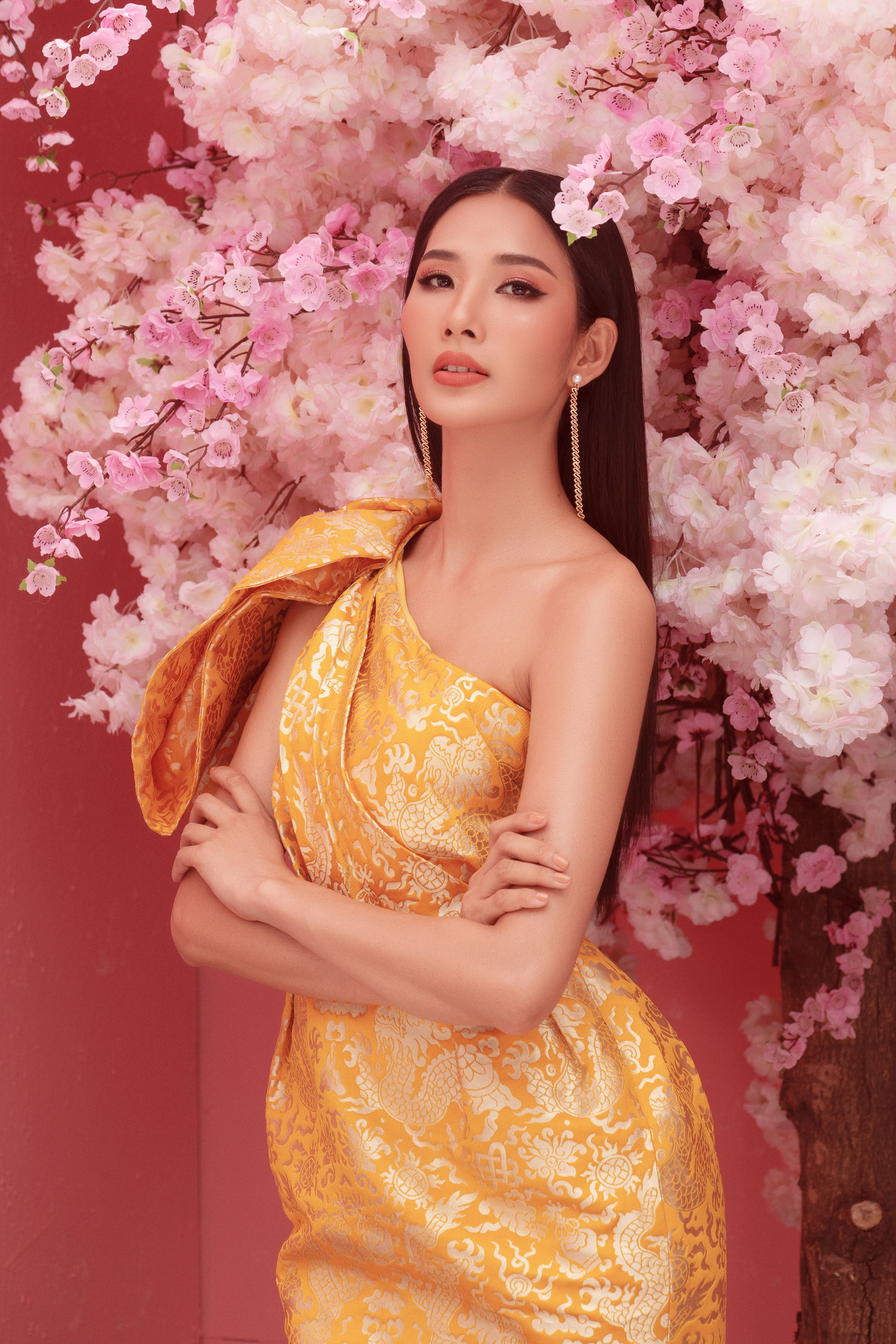 Vàng là một trong những màu sắc được yêu thích của mùa xuân, vì vậy Hoa hậu H’Hen Niê, Á hậu Hoàng Thùy, Á hậu Mâu Thủy muốn gửi đến khán giả lời chúc một năm mới nhiều niềm vui, tài lộc, thành công và vạn sự như ý.